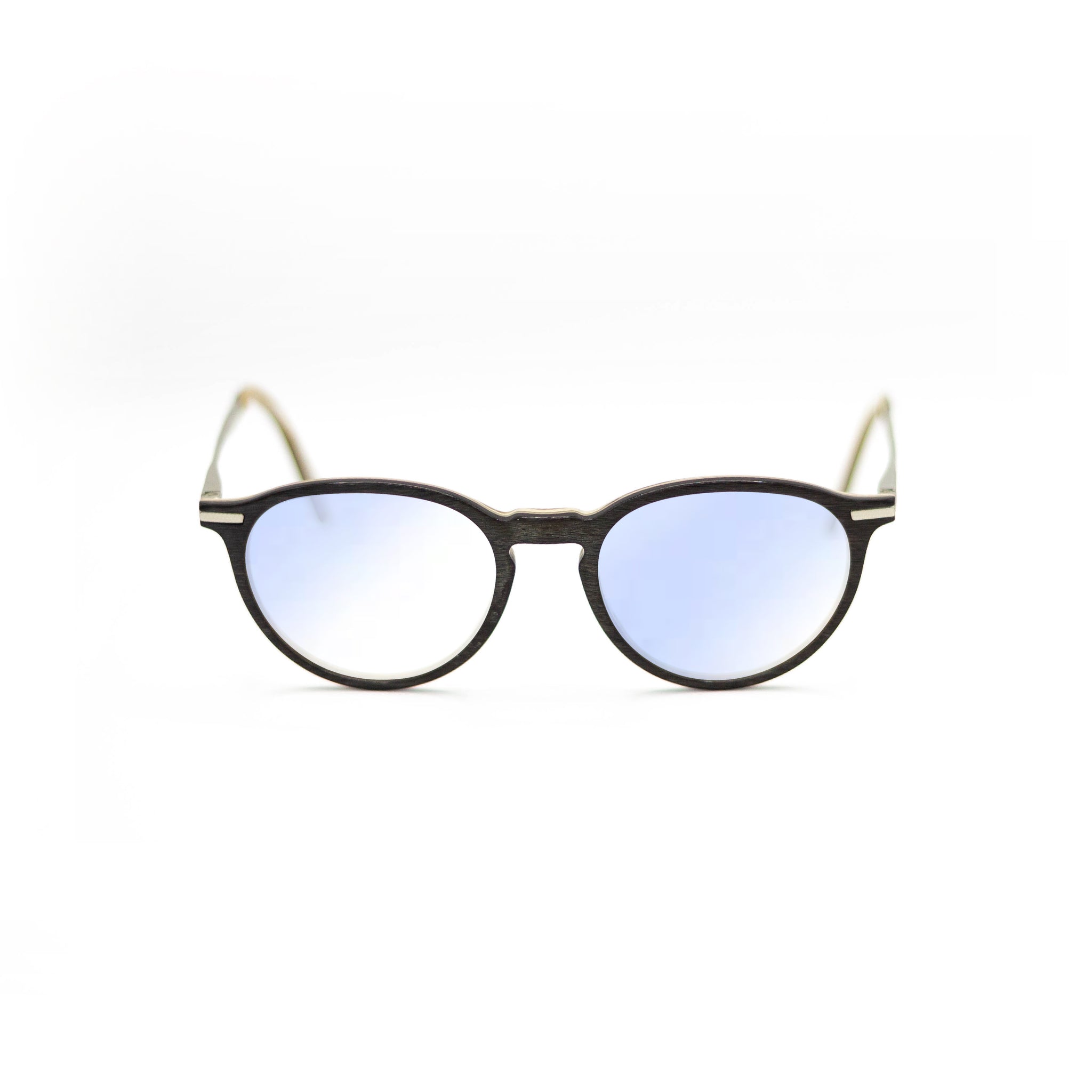 Avec leur monture combinée en acétate sombre et branches en métal argenté, ces lunettes jouent la carte de l’élégance discrète. La forme légèrement papillonnante des verres, adoucie par des contours fins et arrondis, apporte du caractère sans excès. L'effet bicolore entre face et branches souligne la ligne du regard tout en gardant une grande légèreté visuelle.