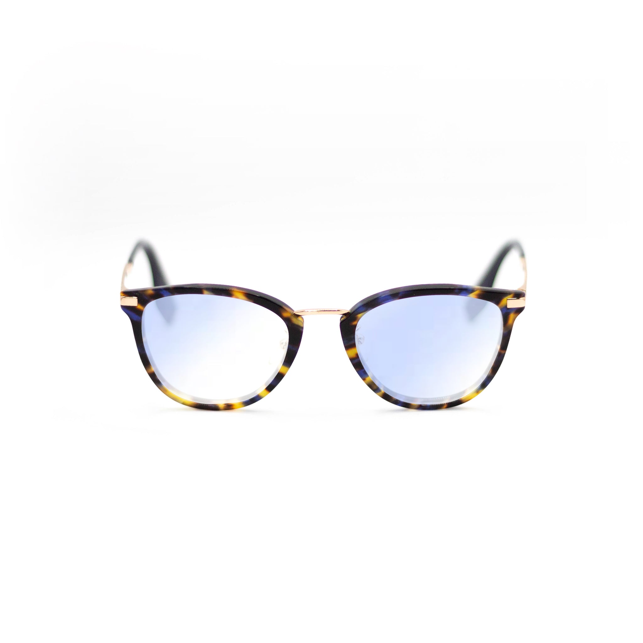 Cette monture combinée marie avec brio l’acétate écaille aux reflets bleutés et le métal doré rose des branches. Sa forme papillonnante légèrement anguleuse évoque un œil de chat adouci, pour un style à la fois affirmé et raffiné. Les manchons noirs viennent renforcer le contraste et l’équilibre de la monture.
