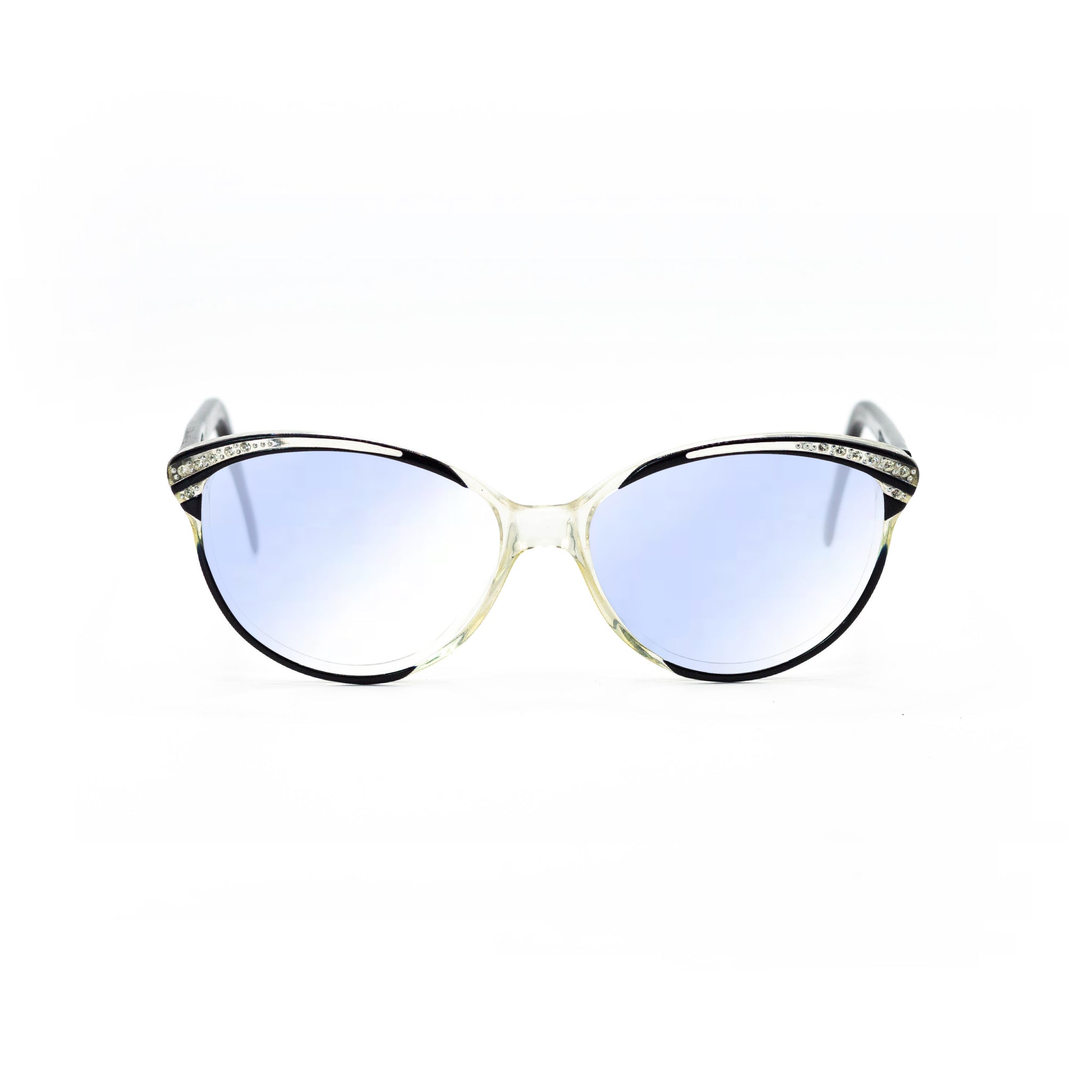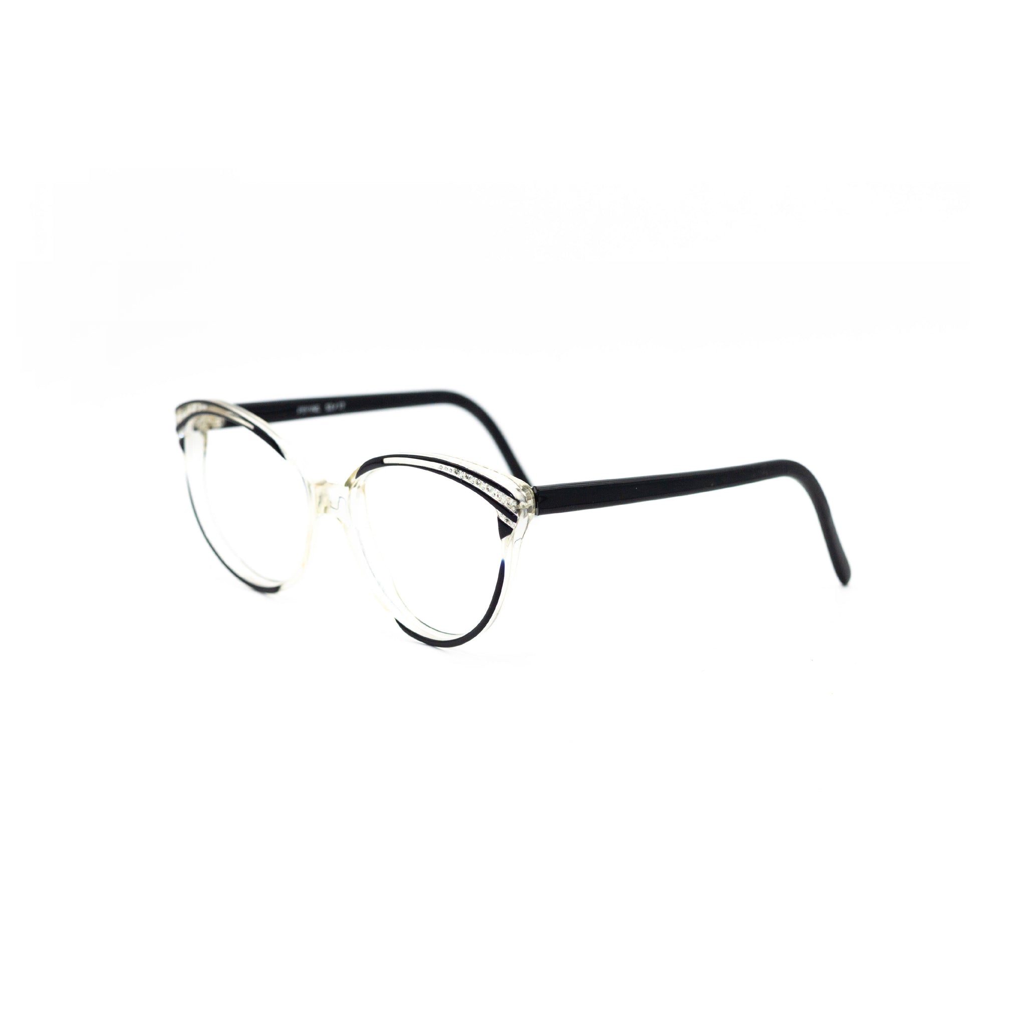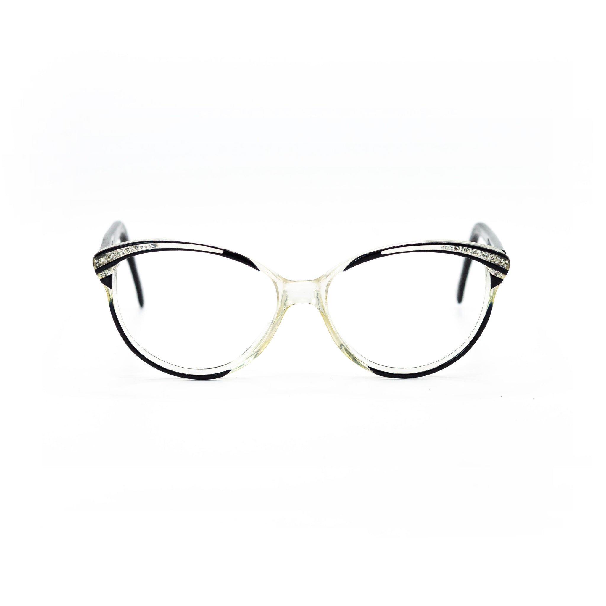 Entièrement conçue en acétate, cette monture se distingue par sa forme papillon assumée, emblématique des années 50, ici revisitée avec une modernité graphique. Le contraste entre le noir intense sur le haut de la face et le transparent cristallin sur le bas crée un effet de légèreté visuelle, tout en structurant le regard. Un jeu de matières et de courbes qui capte la lumière et affirme la personnalité.