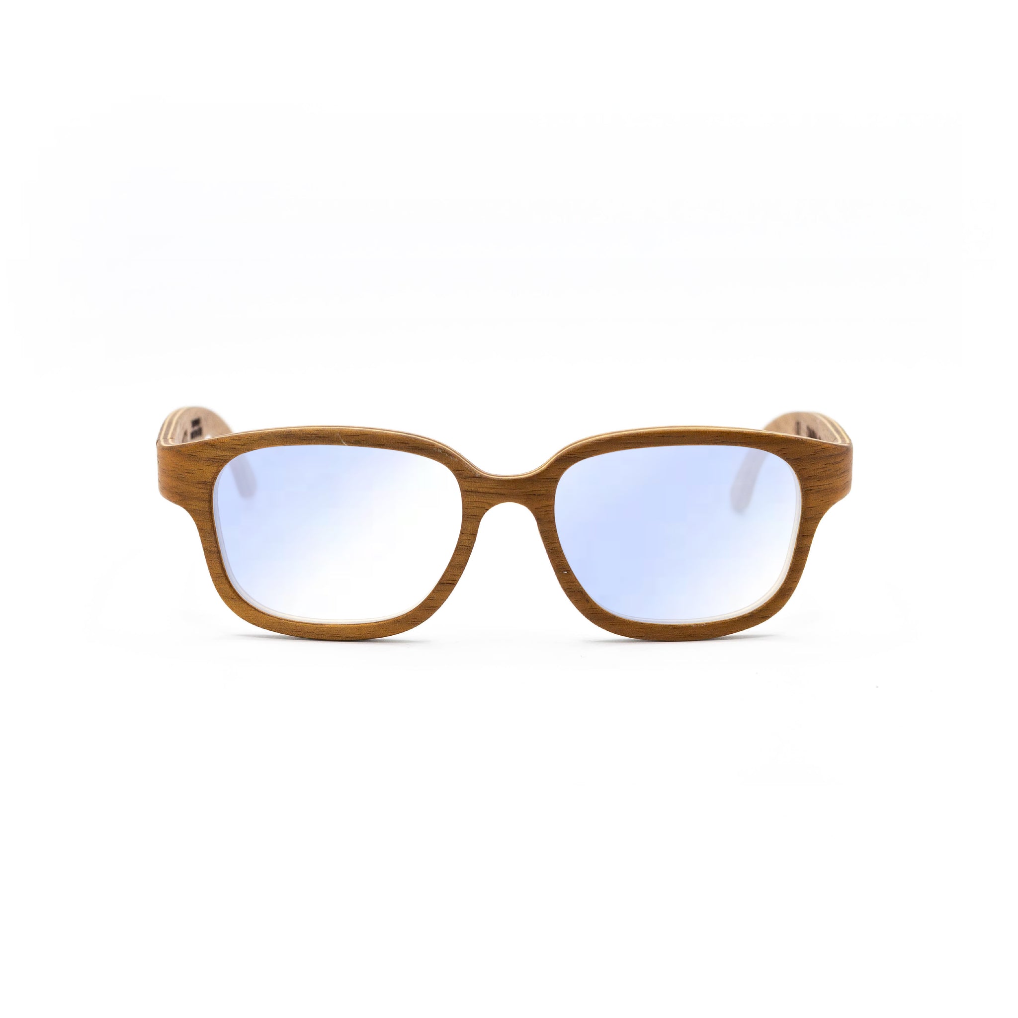 Entièrement façonnée à partir de bois naturel clair, cette monture présente une forme rectangulaire subtilement arrondie aux coins, qui apporte une touche de douceur à une structure plutôt affirmée. La teinte miel et le veinage du bois rendent chaque paire unique, chaleureuse et naturellement élégante.