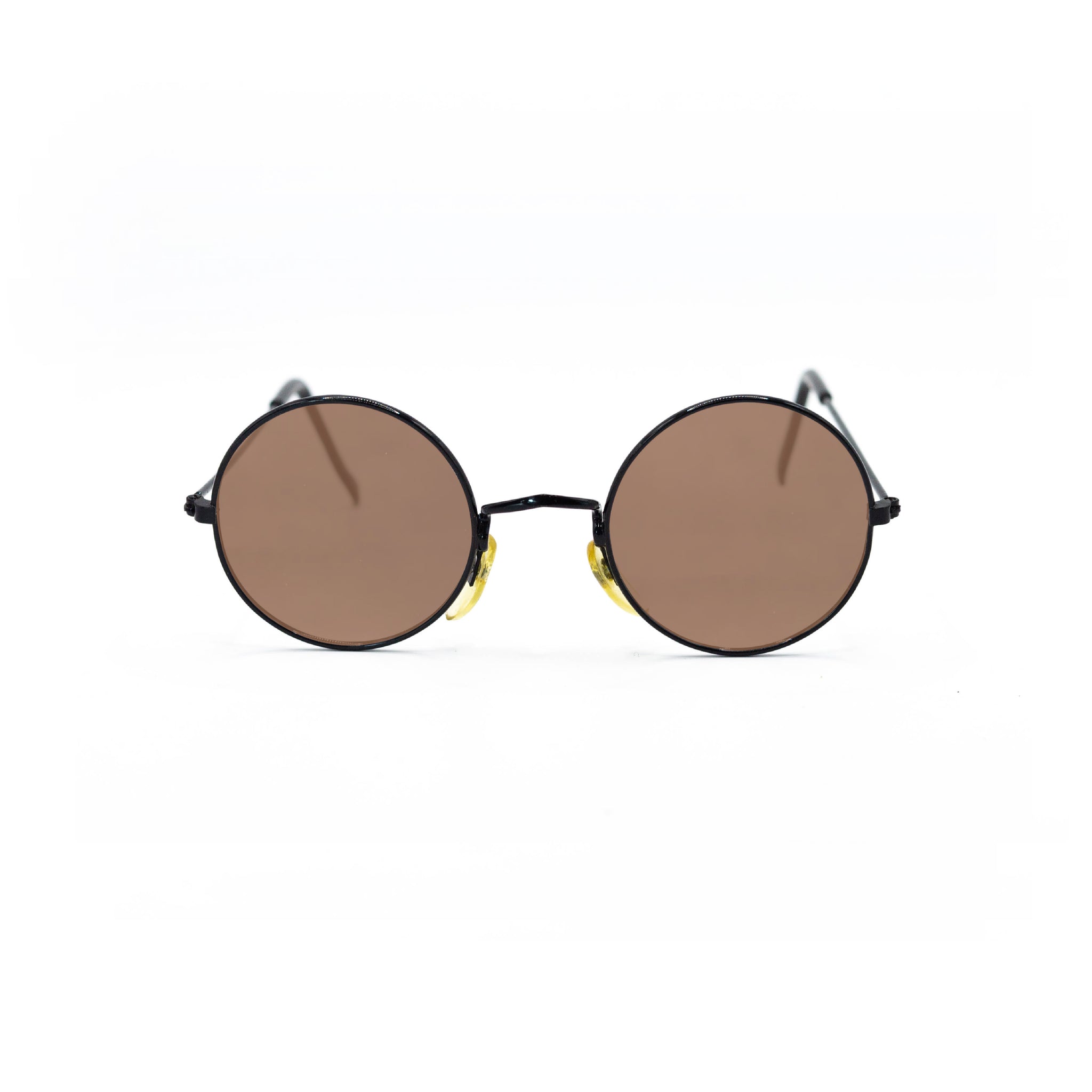 Avec leur monture entièrement ronde en métal noir, ces lunettes jouent la carte du style intemporel. Le pont fin et les plaquettes dorées ajoutent une discrète touche de contraste, pour une allure à la fois sobre, vintage et affirmée.