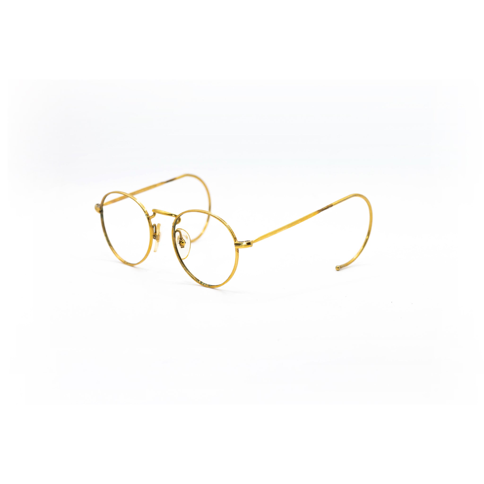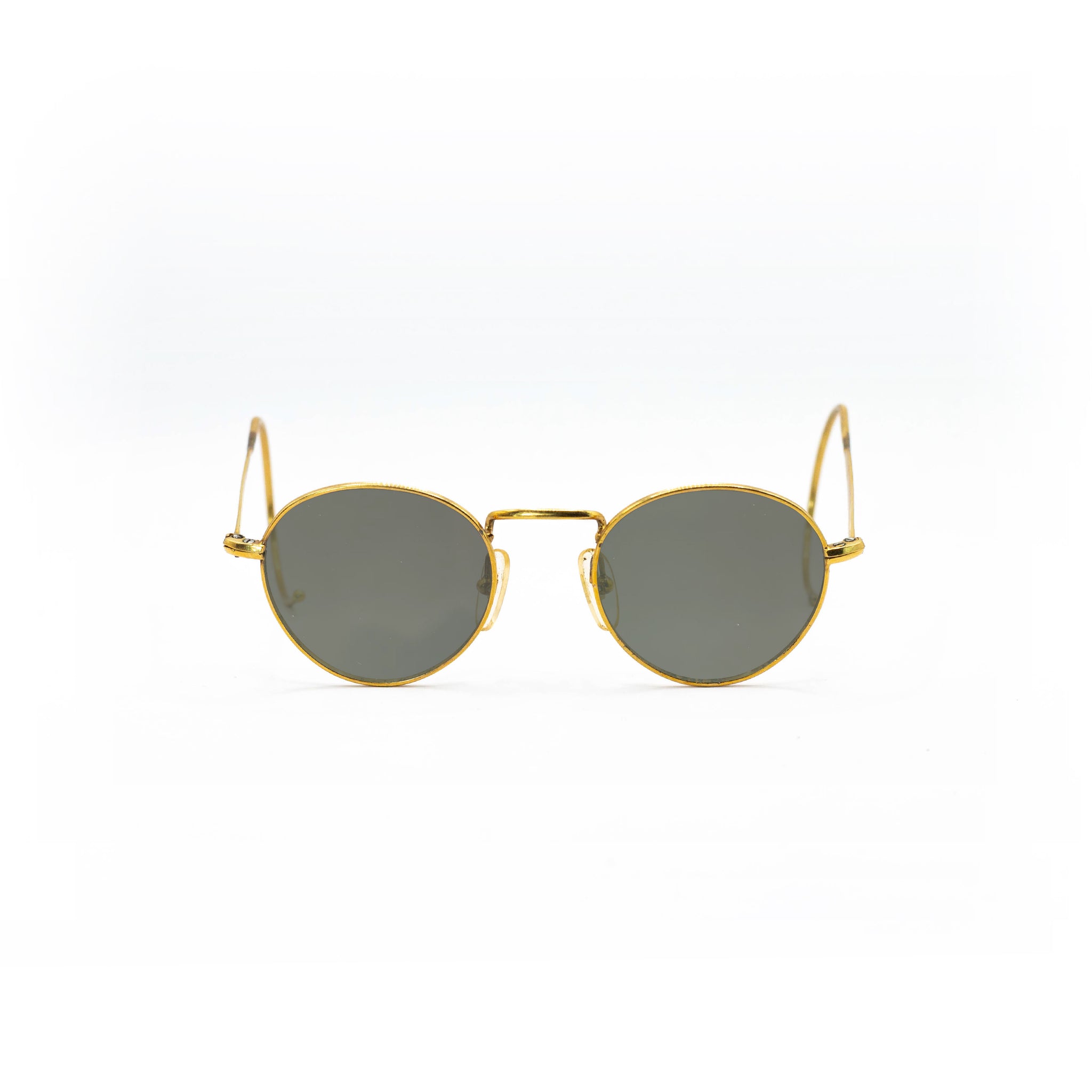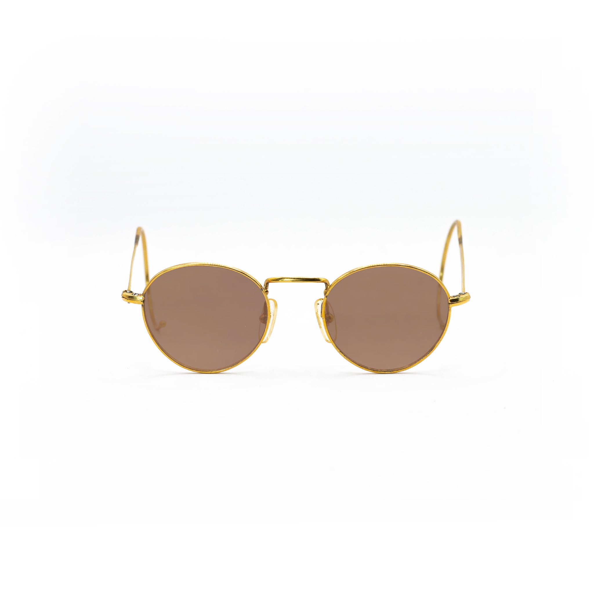 Avec leur monture en métal recouverte d’or, ces lunettes incarnent le raffinement discret caractéristique des modèles optiques haut de gamme de cette décennie. Les branches galbées en crochet, typiques de l’époque, assurent un maintien parfait derrière les oreilles, tout en accentuant le caractère rétro du design.