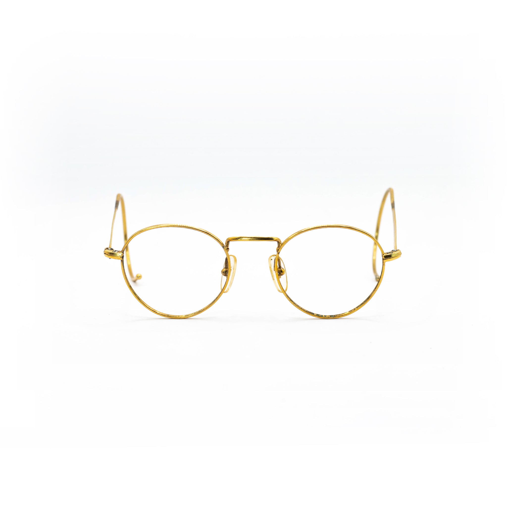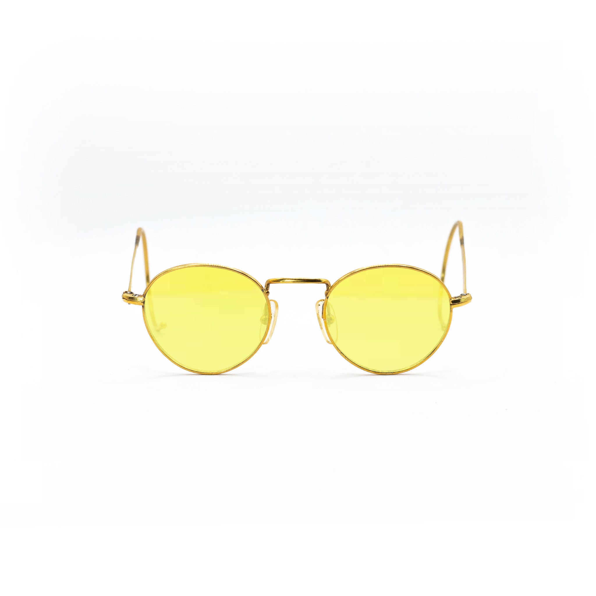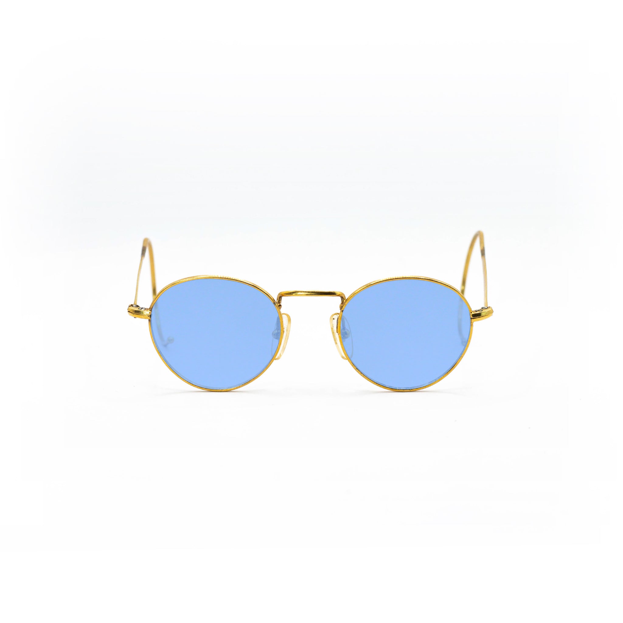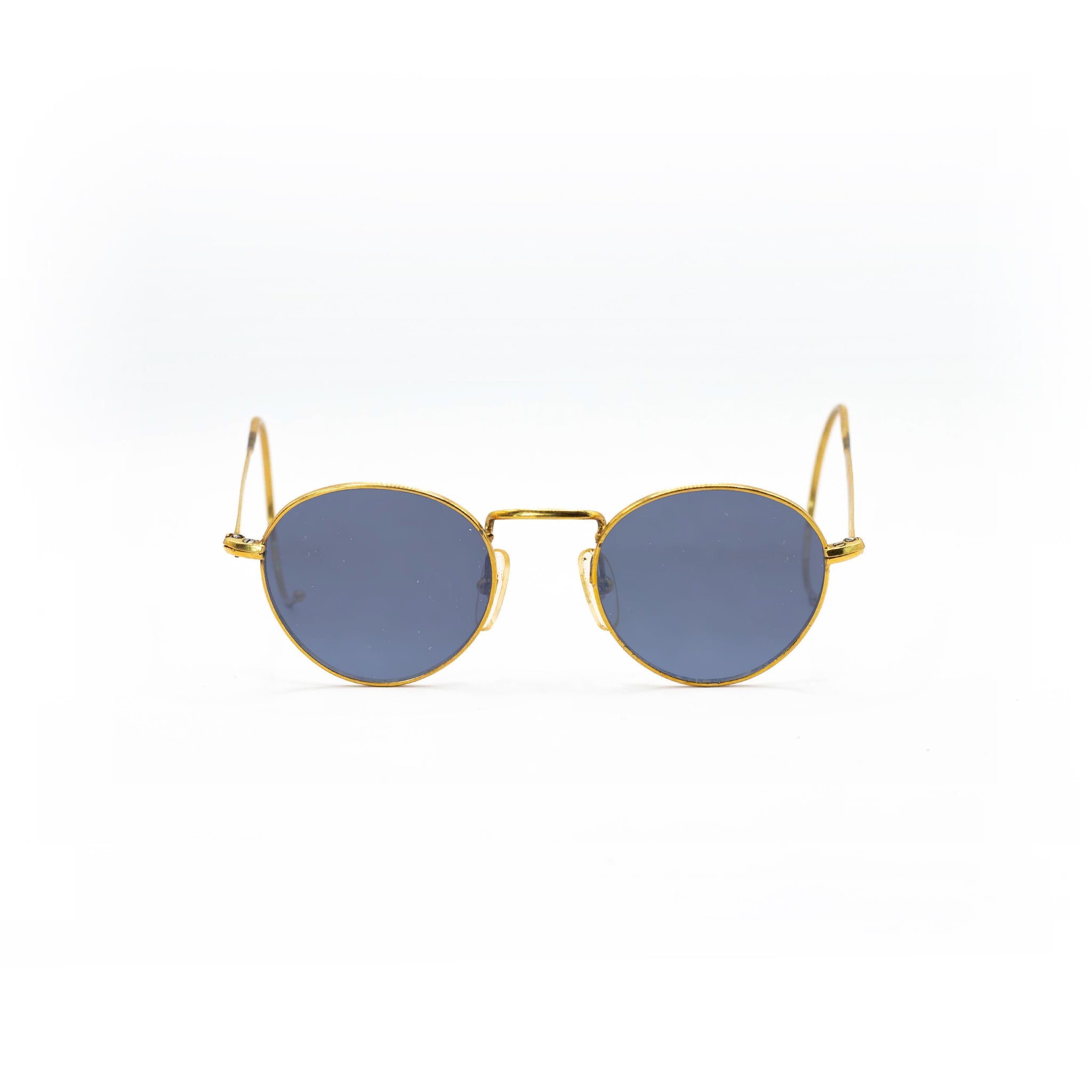Avec leur monture en métal recouverte d’or, ces lunettes incarnent le raffinement discret caractéristique des modèles optiques haut de gamme de cette décennie. Les branches galbées en crochet, typiques de l’époque, assurent un maintien parfait derrière les oreilles, tout en accentuant le caractère rétro du design.