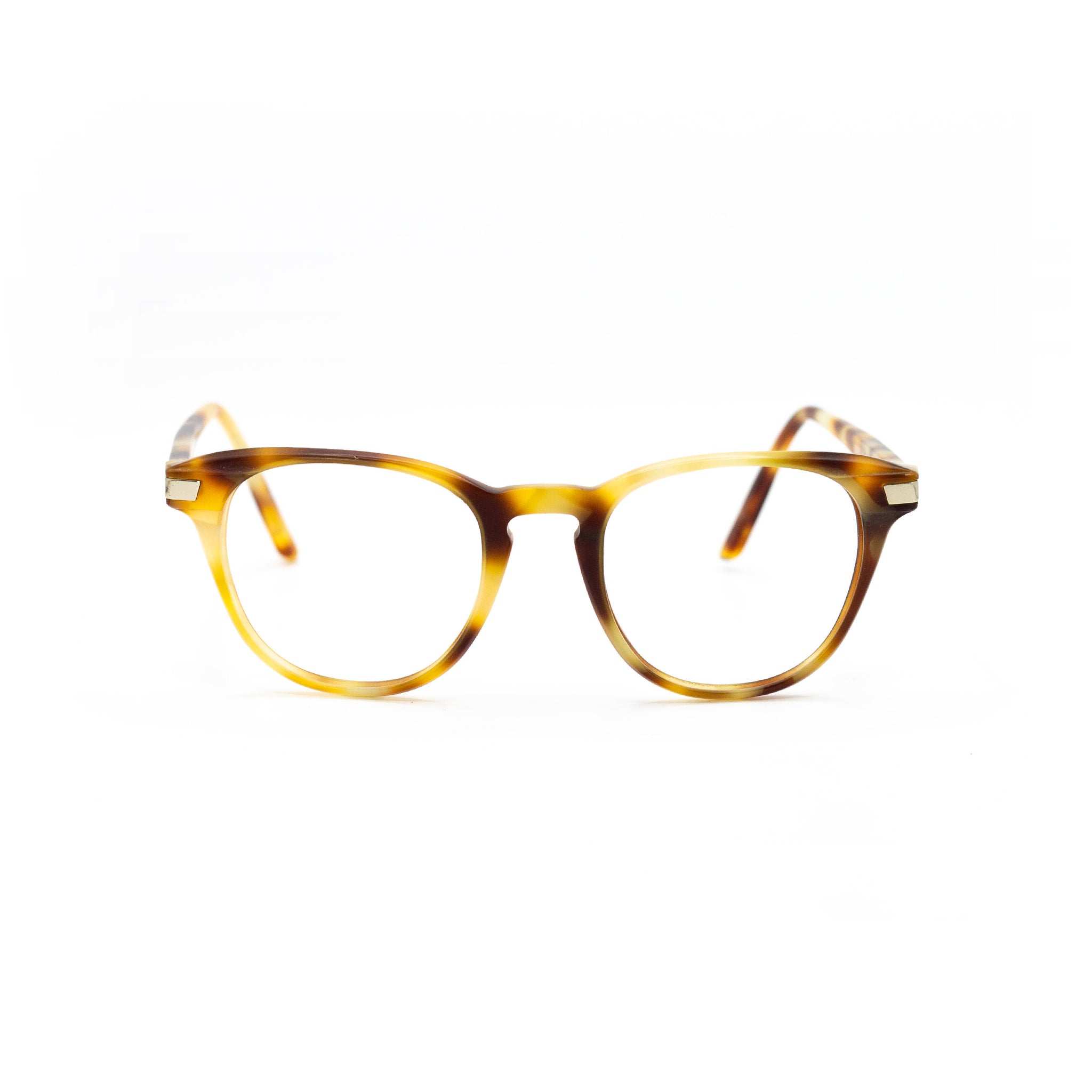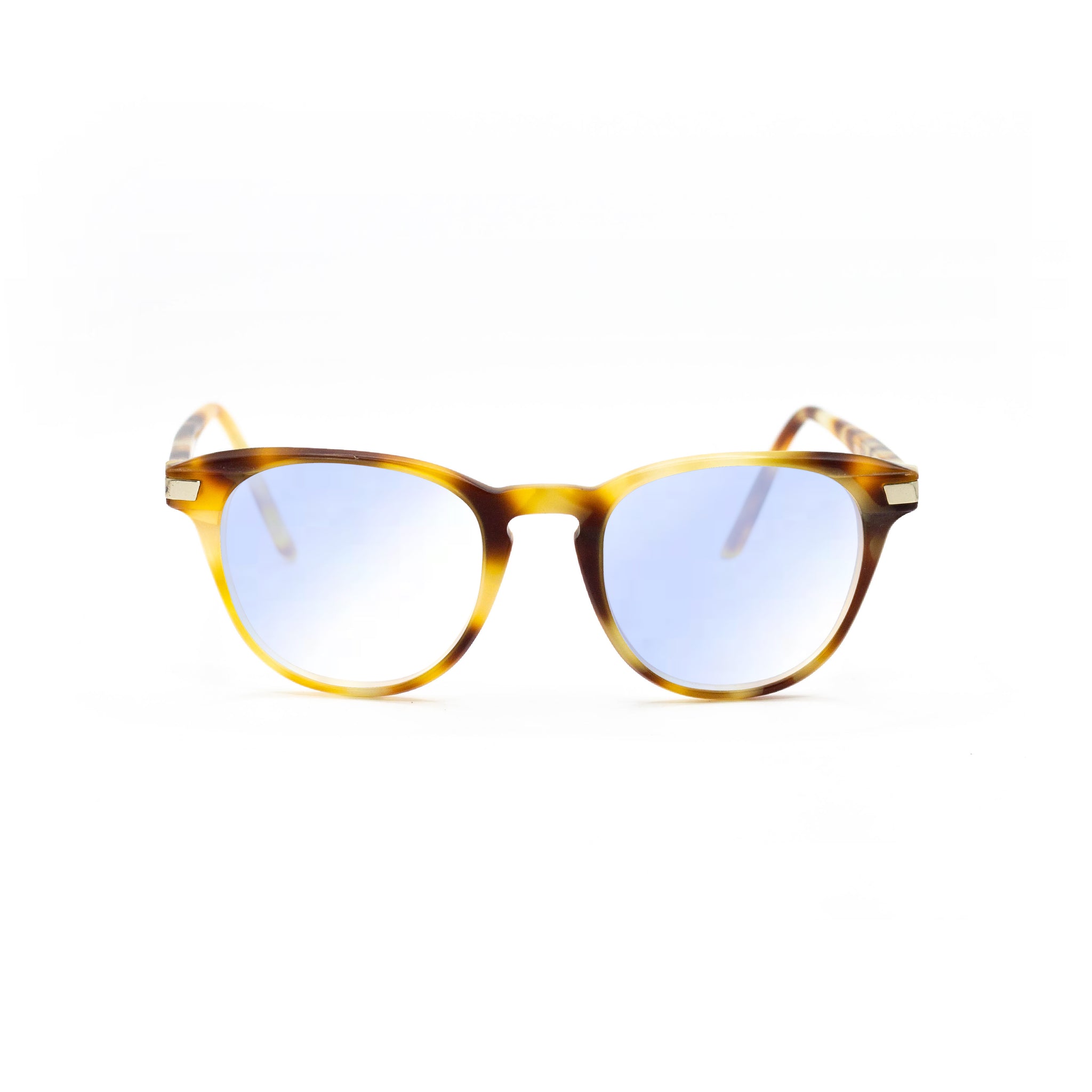 Avec leur monture en acétate aux tons écaille miel et leur forme légèrement arrondie façon pantos, ces lunettes affichent un style rétro-chic indémodable. Le design met en valeur un pont discret, des lignes équilibrées et une structure fine, idéale pour un look à la fois raffiné et décontracté.