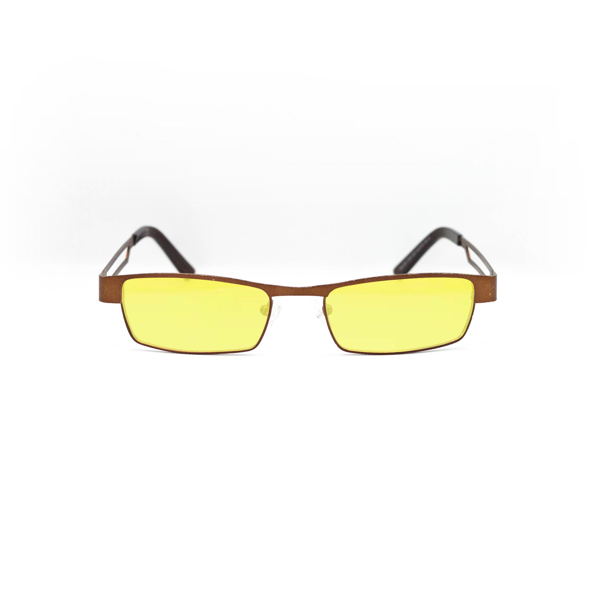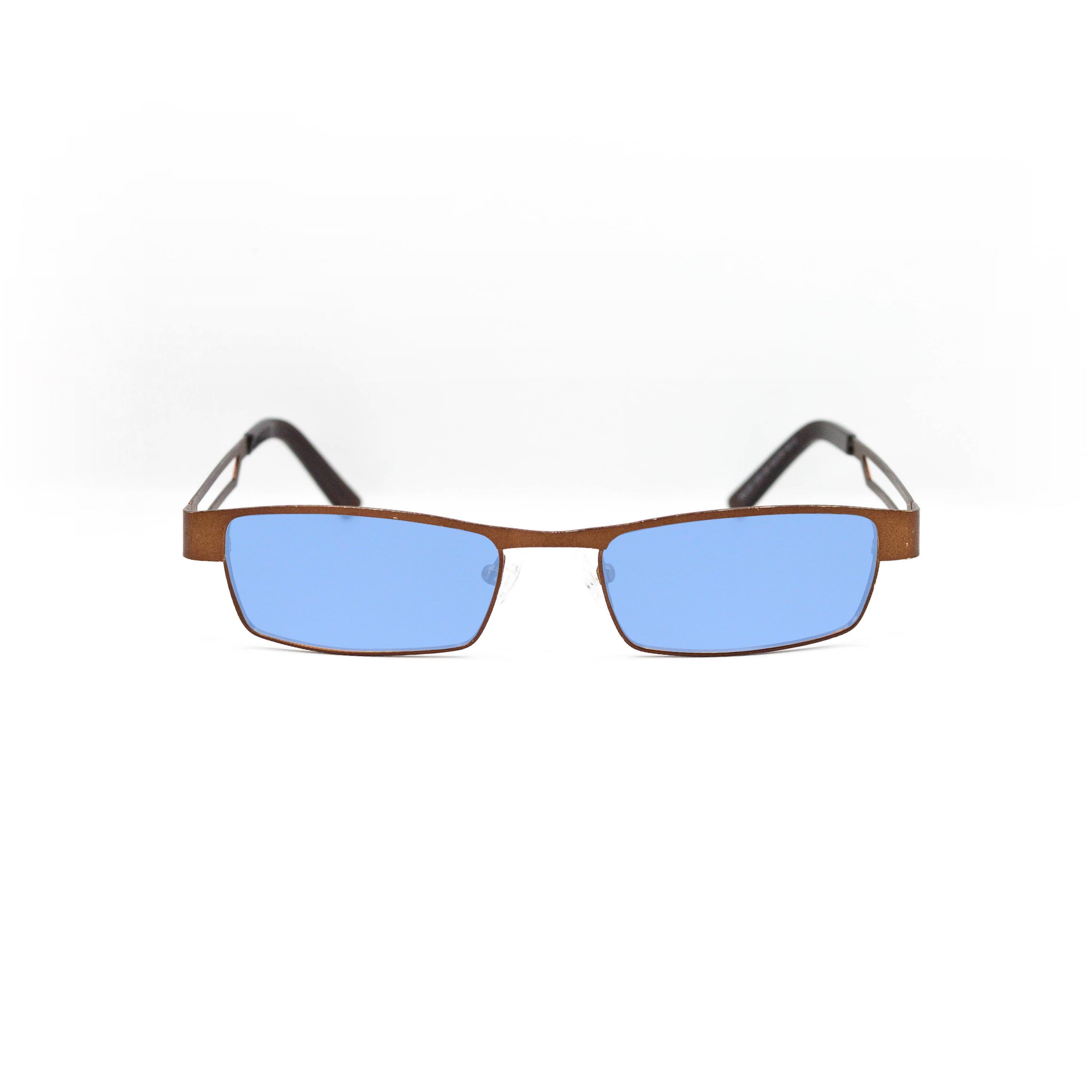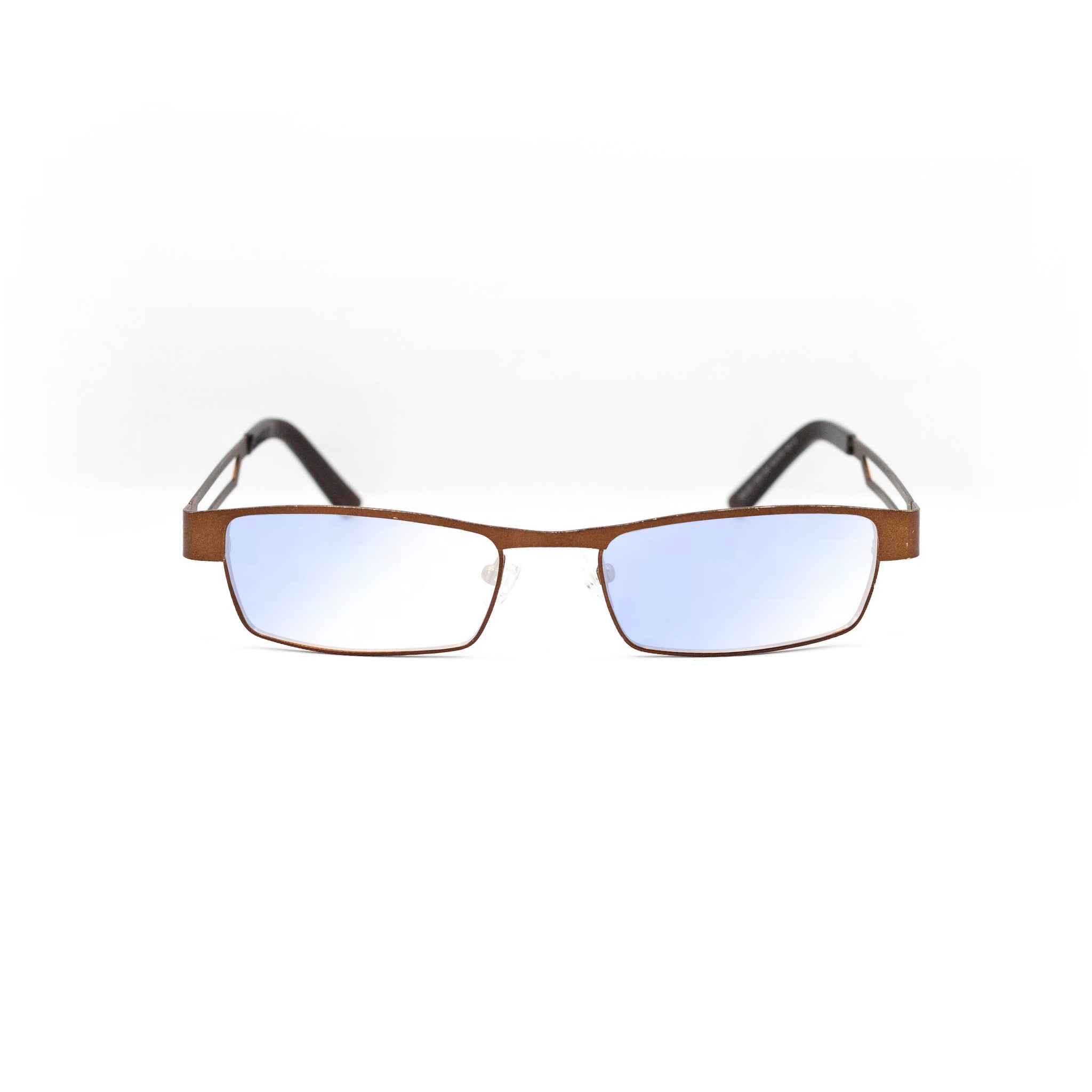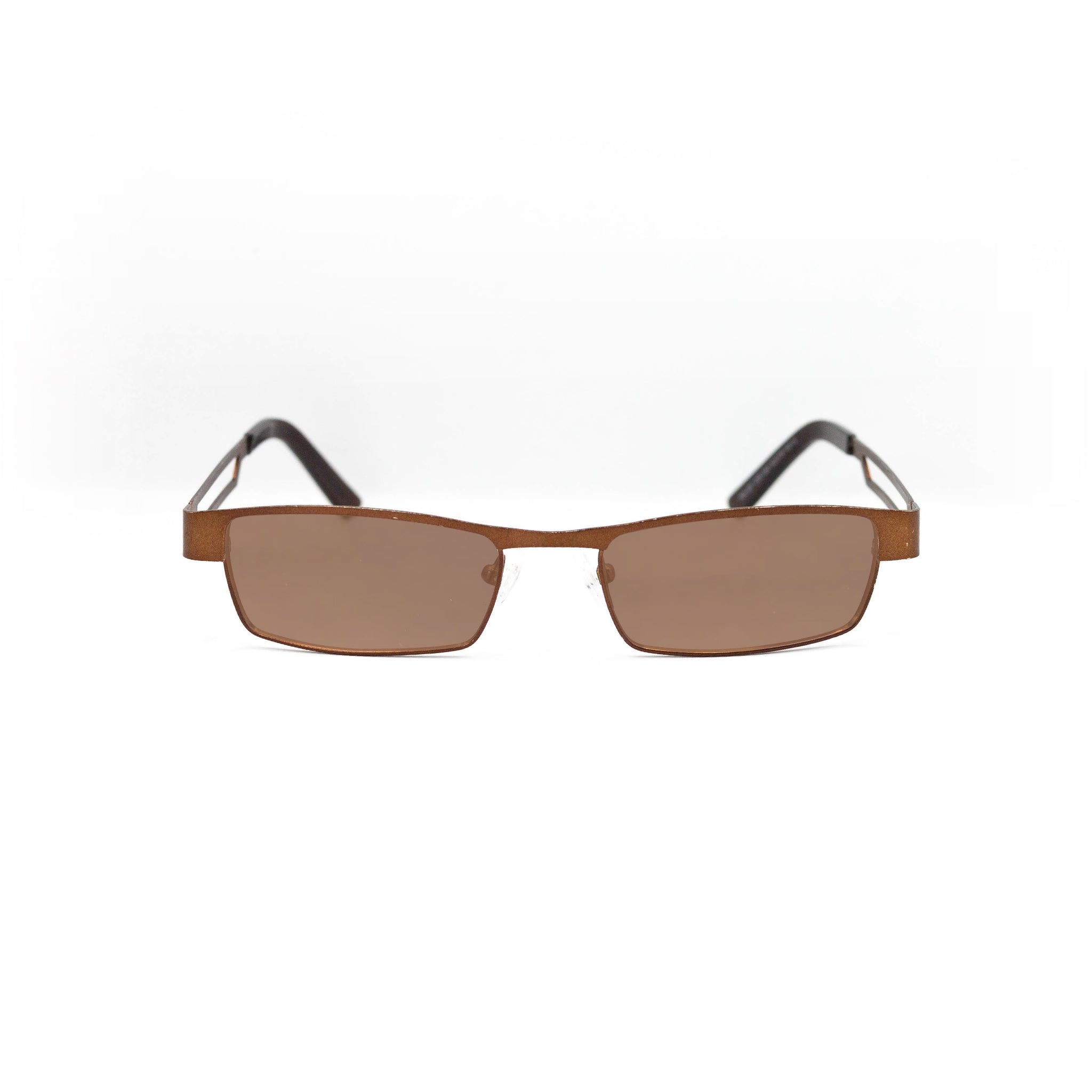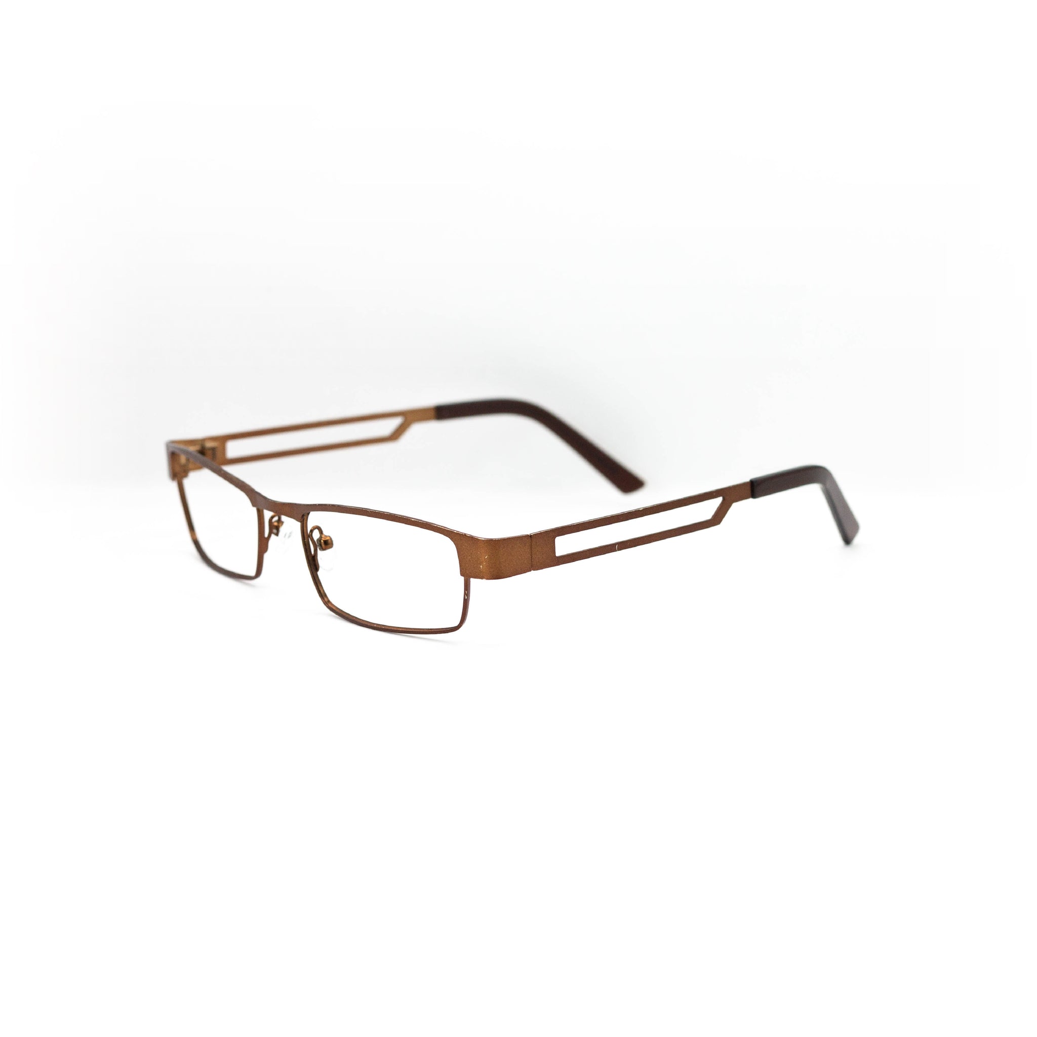 Cette monture en métal finition brun cuivré mat séduit par son caractère graphique. Sa forme rectangulaire affirmée, aux angles nets et aux lignes franches, apporte immédiatement de la structure au visage. Le pont droit et la face légèrement épaisse renforcent son allure moderne. Les branches ajourées au design géométrique ajoutent une dimension architecturale et légère à l’ensemble, tandis que les embouts foncés assurent confort et stabilité. Les plaquettes ajustables permettent un ajustement précis et agréable.