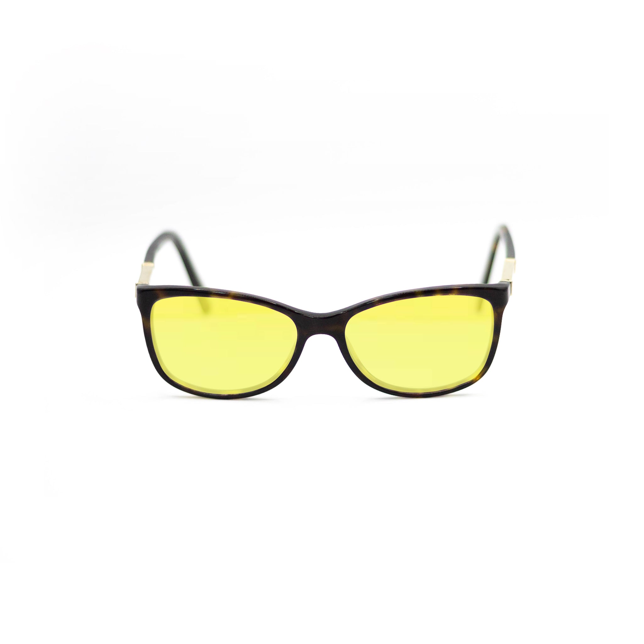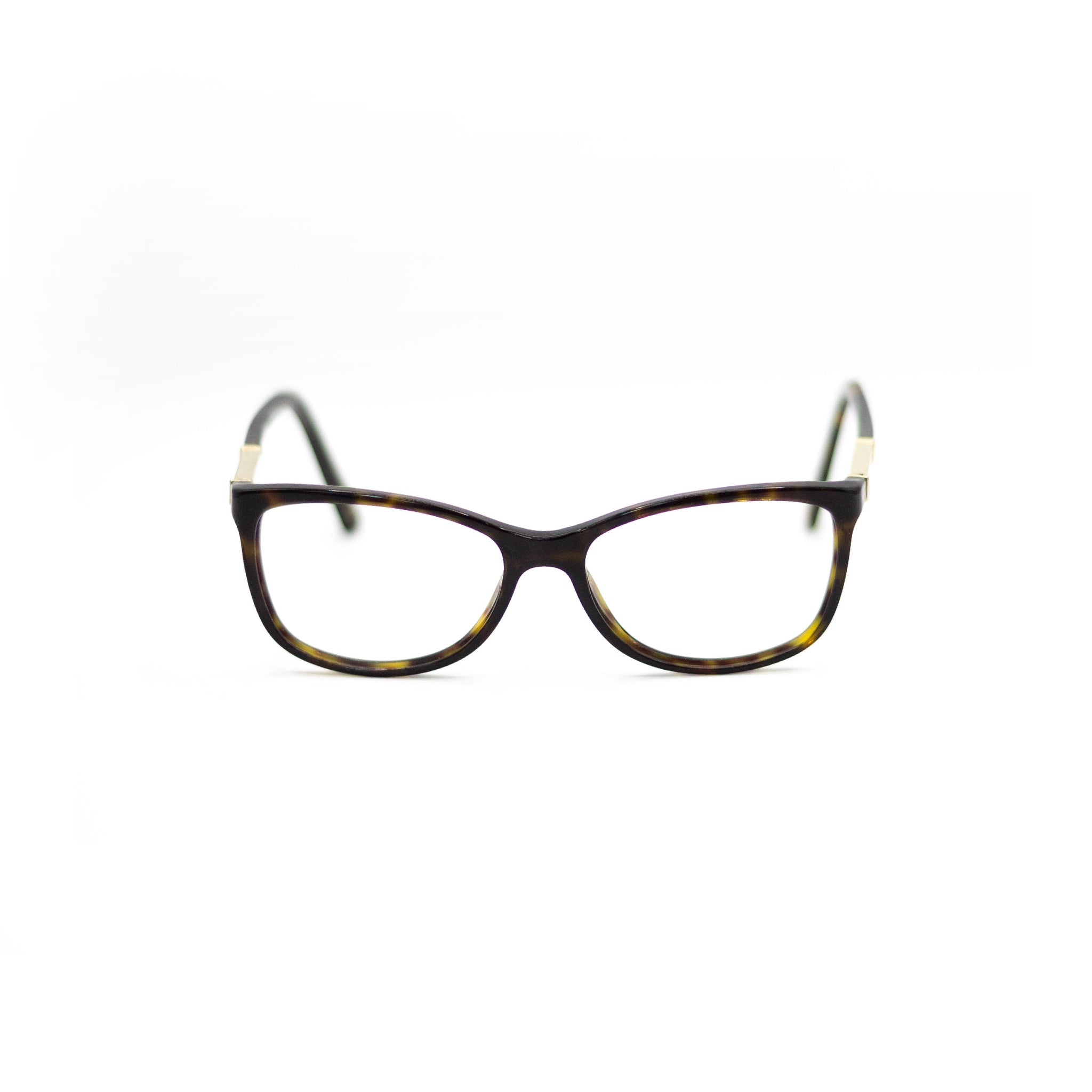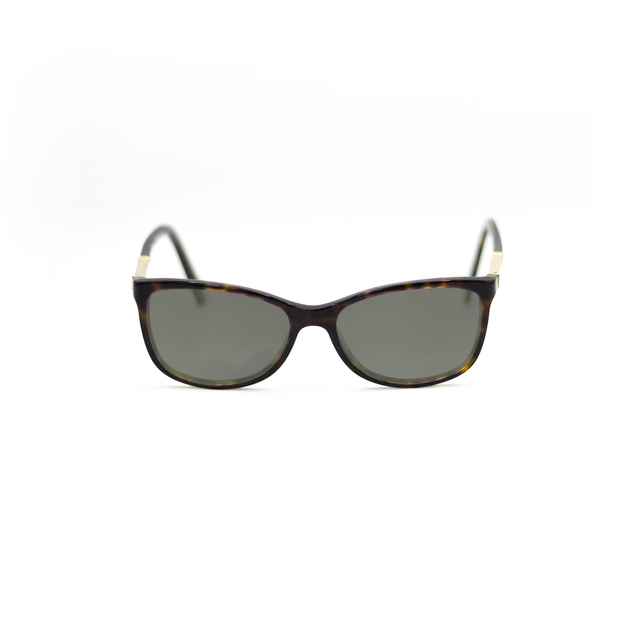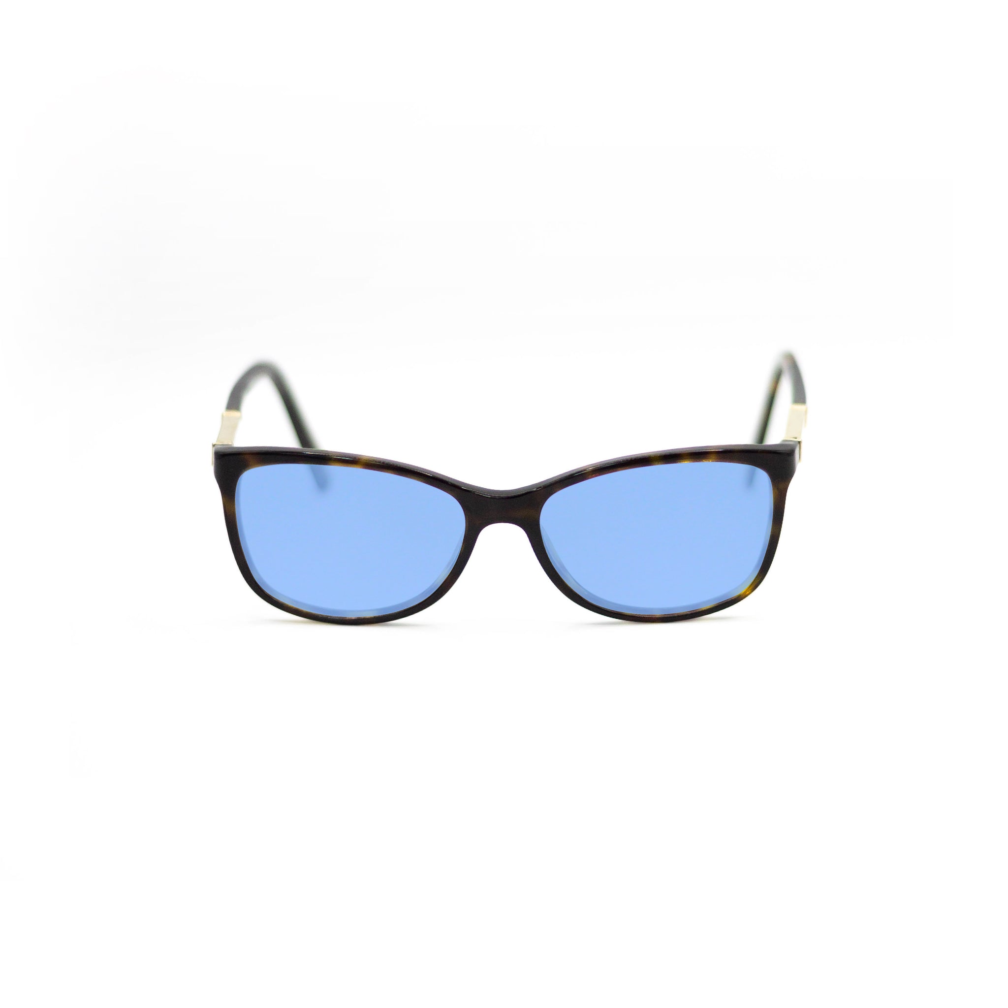 Avec leur forme légèrement papillonnante et leur monture en acétate effet écaille brun foncé, ces lunettes jouent la carte du raffinement tout en subtilité. Les branches ornées d’un insert doré gravé au nom de la marque ajoutent une signature luxueuse sans ostentation.