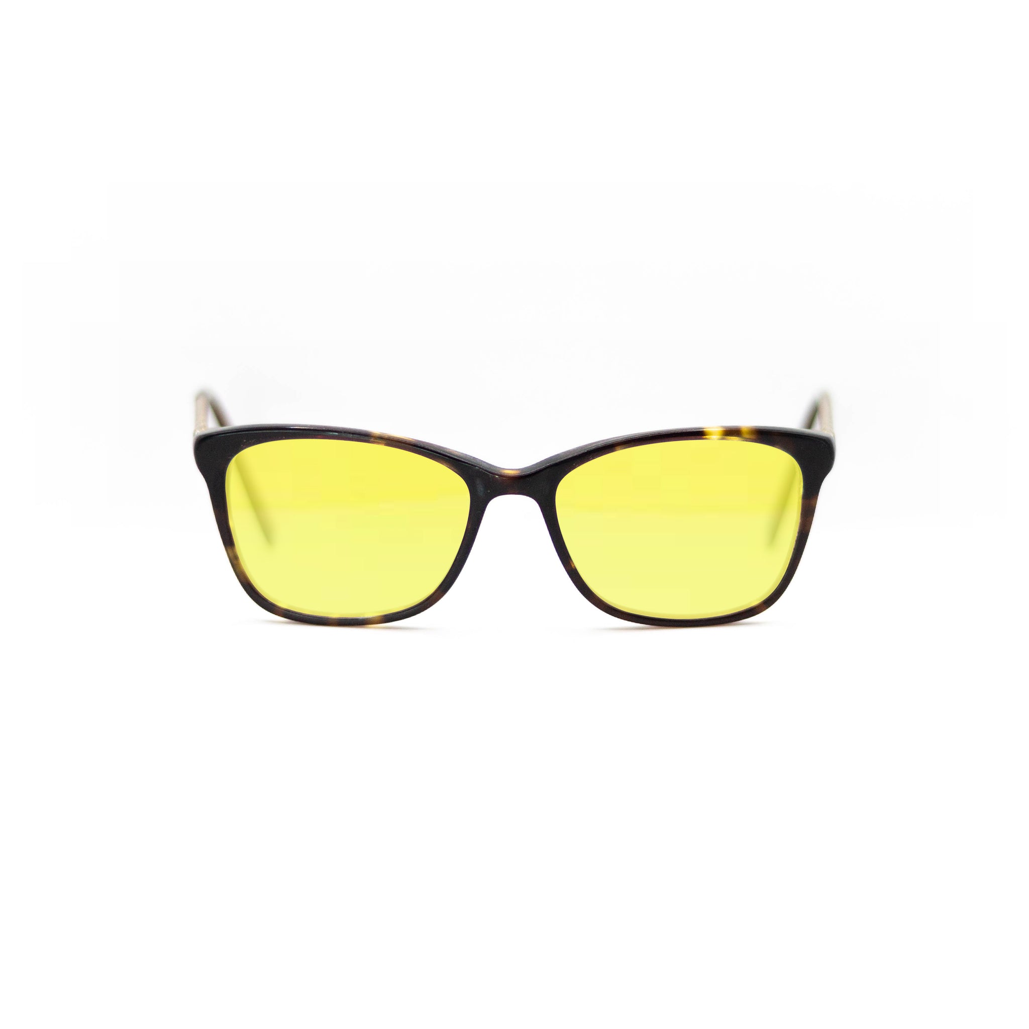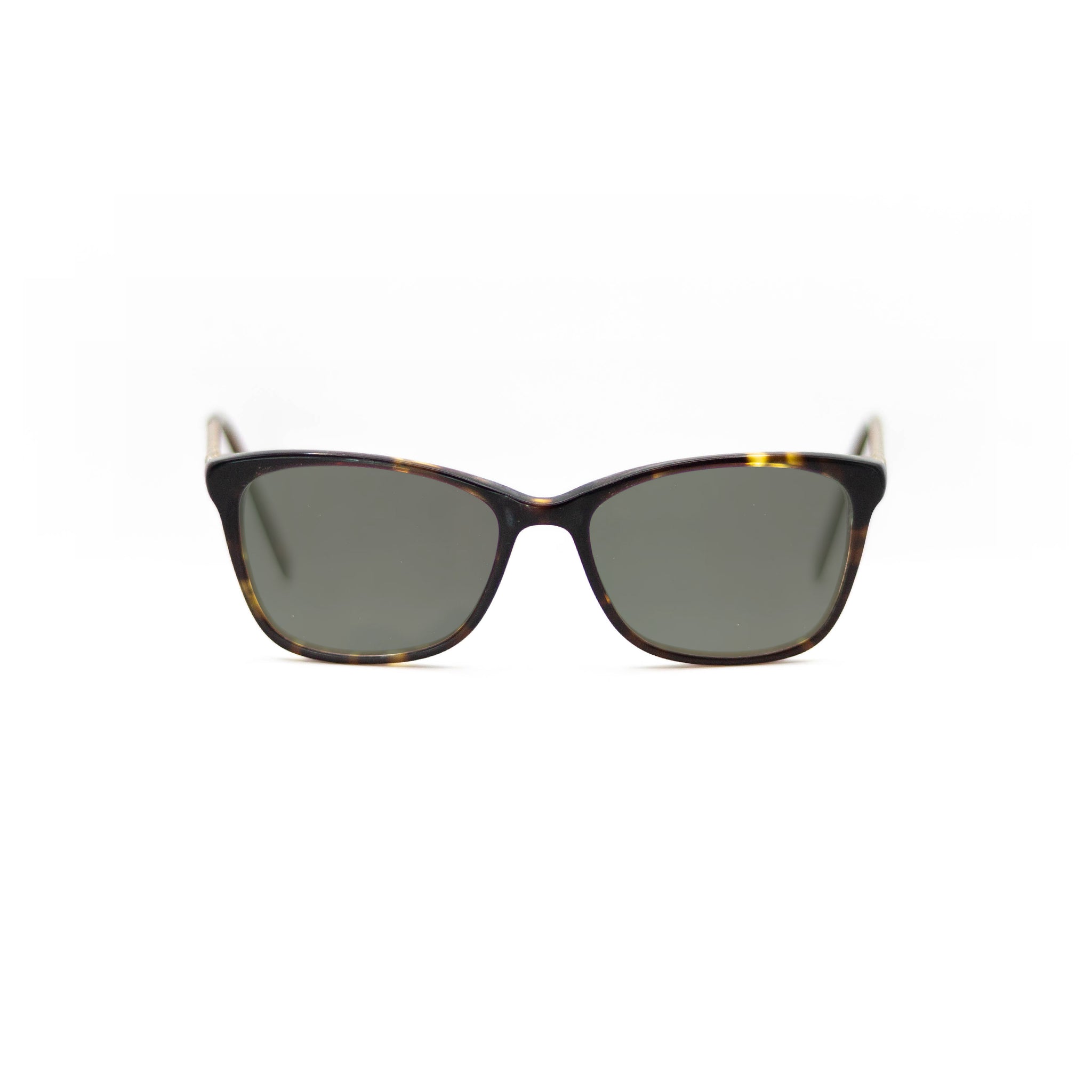 Cette monture combinée séduit par son devant en acétate écaille aux reflets brun miel et ses branches en métal doré finement texturé, où l’on retrouve discrètement le logo emblématique de la marque. La silhouette légèrement papillon vient élancer le regard tout en restant sobre et facile à porter au quotidien.
