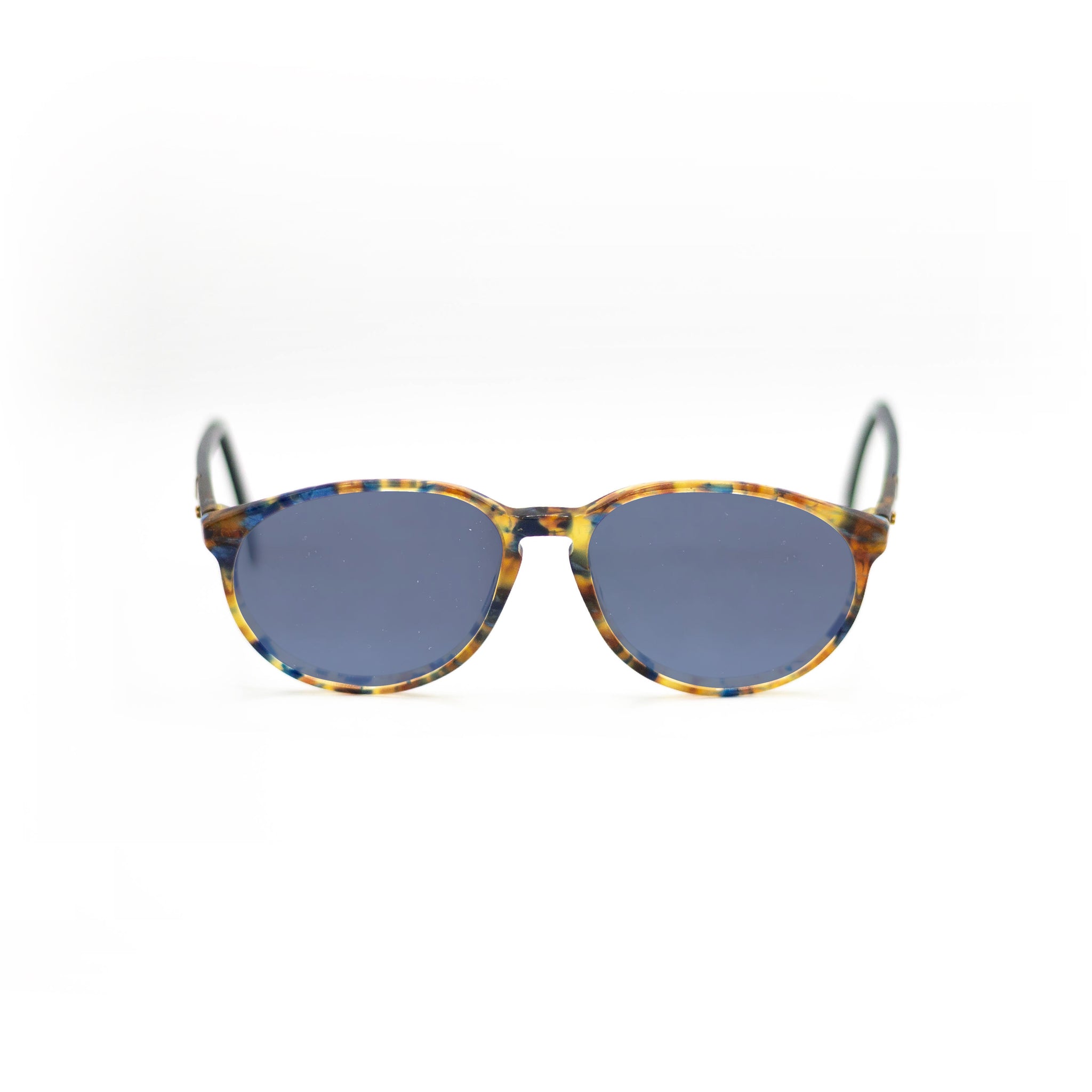 Cette monture en acétate arbore une silhouette ovale légèrement papillonnante, adoucie et harmonieuse. Le motif écaille aux reflets miel et bleu marine évoque un style rétro très raffiné, rehaussé de branches fines bleu foncé au liseré doré, où l’on retrouve le célèbre crocodile Lacoste, discret et emblématique.