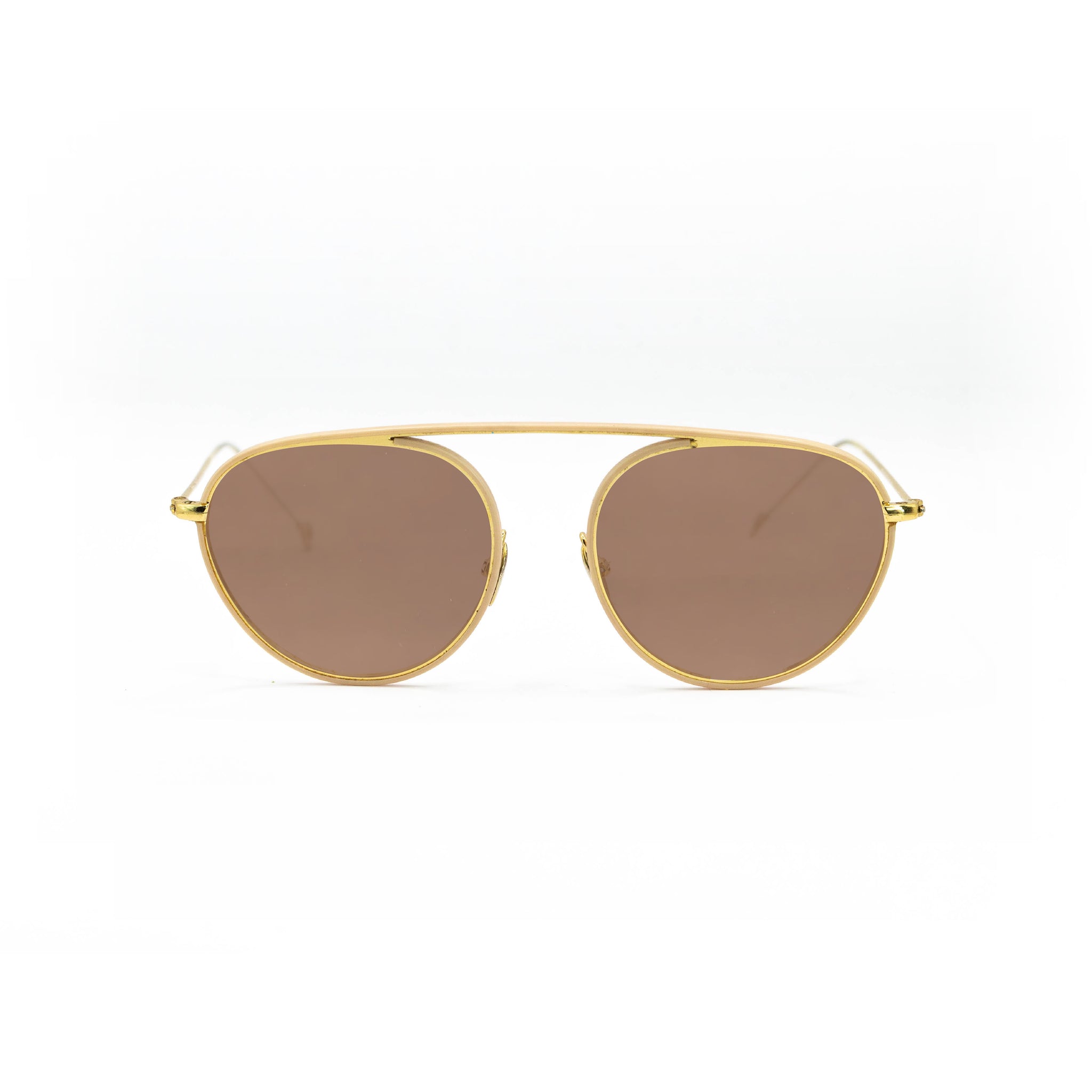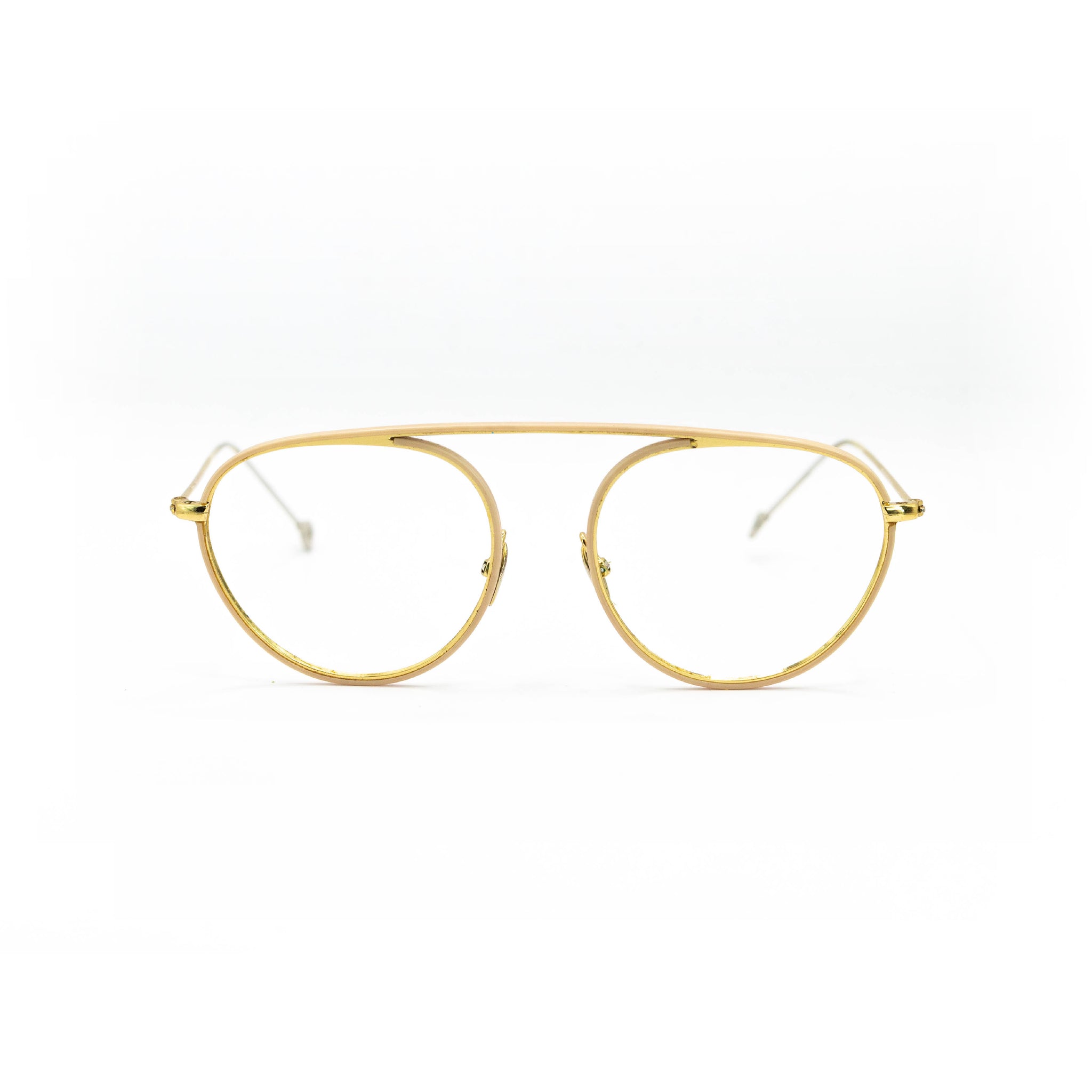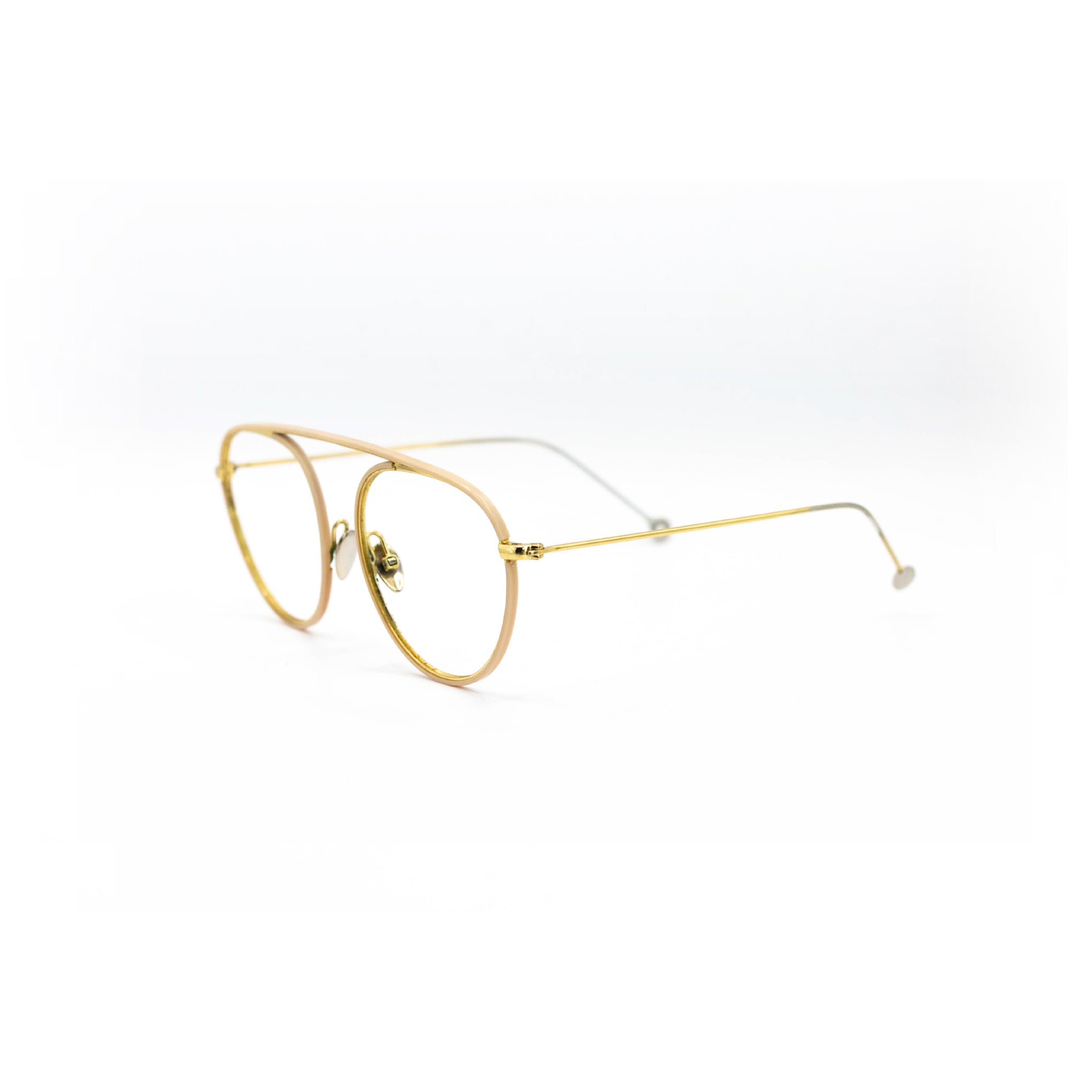 Avec leur silhouette aviateur revisitée, ces lunettes affichent une ligne douce et équilibrée, loin du style trop marqué de certains modèles pilotes. La structure en métal doré ultra-fin est sublimée par un cerclage nude rosé satiné qui souligne avec délicatesse les contours des verres. Un pont droit légèrement arrondi et des branches fines apportent à l’ensemble une impression de légèreté, presque aérienne.