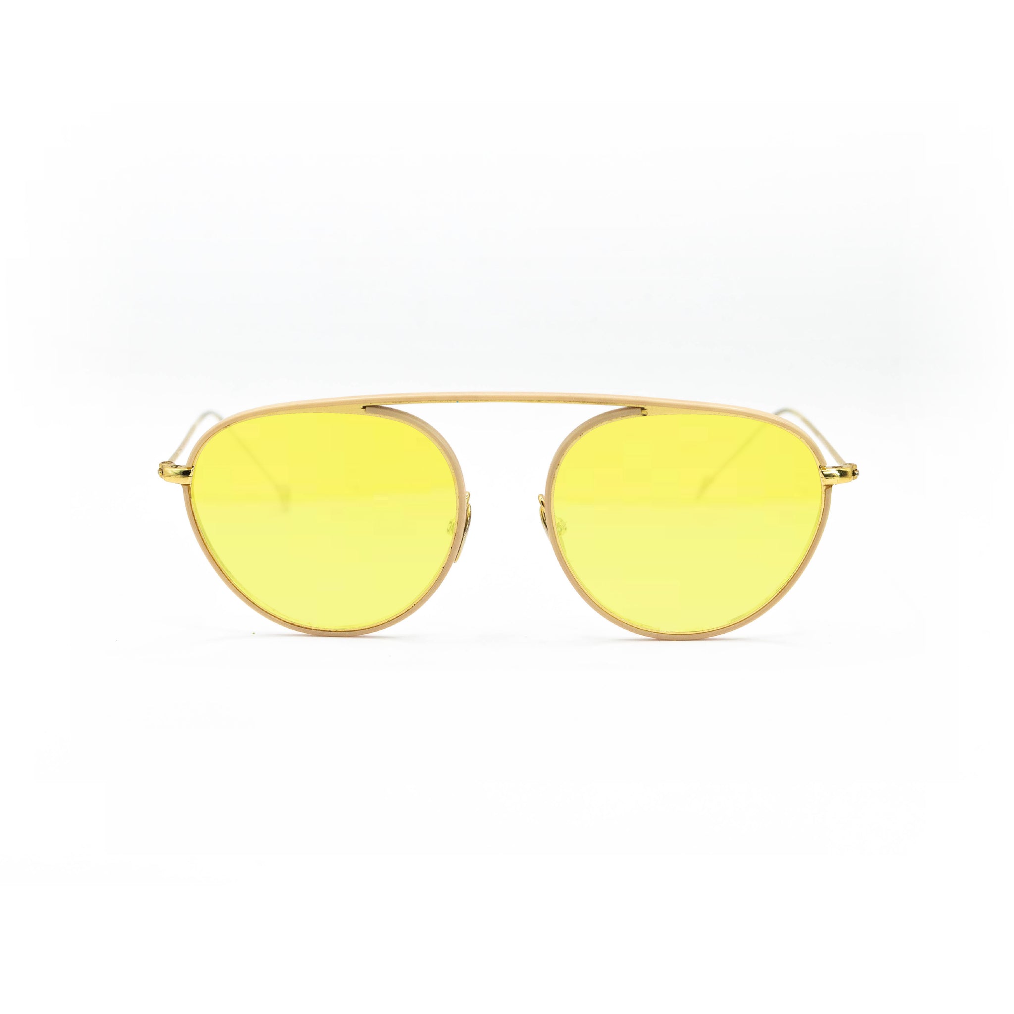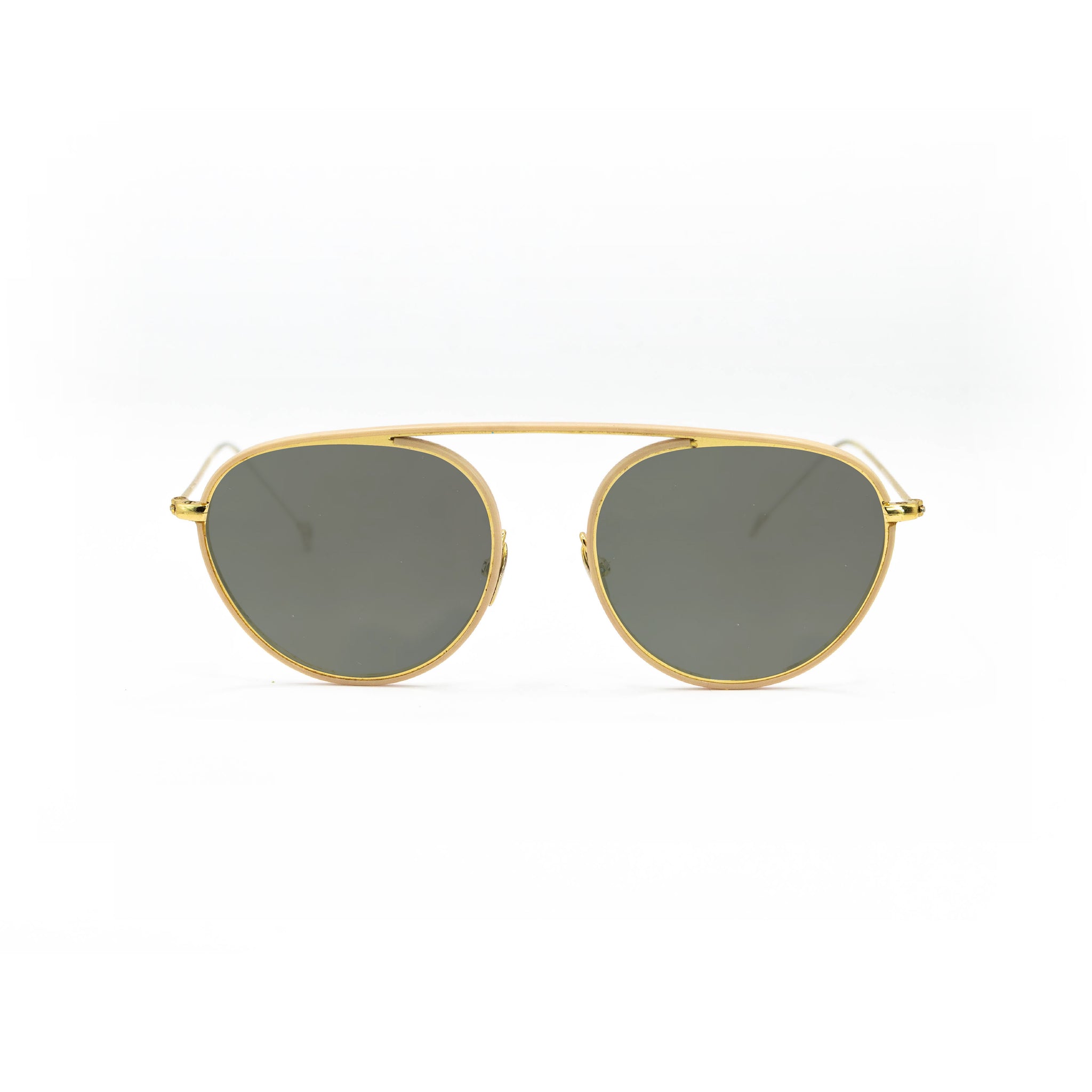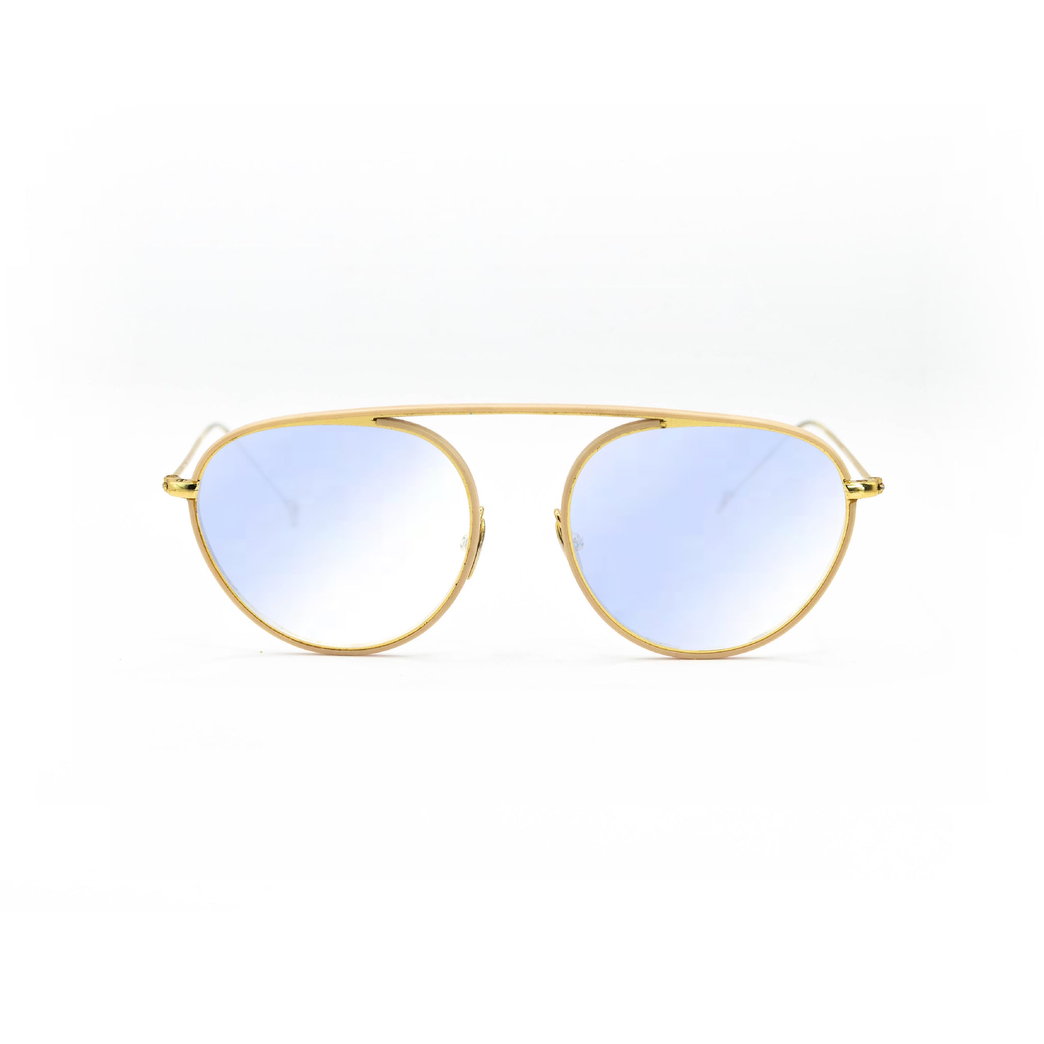 Avec leur silhouette aviateur revisitée, ces lunettes affichent une ligne douce et équilibrée, loin du style trop marqué de certains modèles pilotes. La structure en métal doré ultra-fin est sublimée par un cerclage nude rosé satiné qui souligne avec délicatesse les contours des verres. Un pont droit légèrement arrondi et des branches fines apportent à l’ensemble une impression de légèreté, presque aérienne.