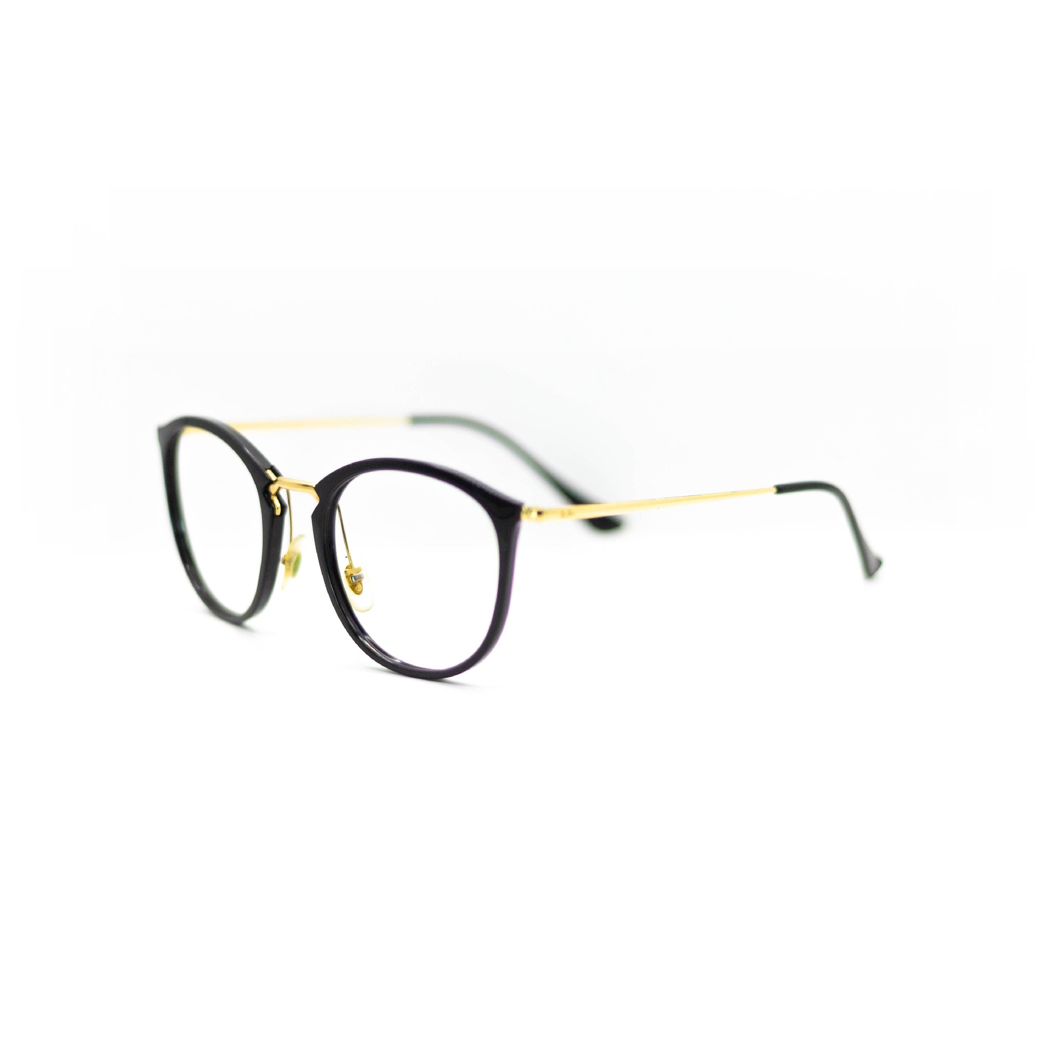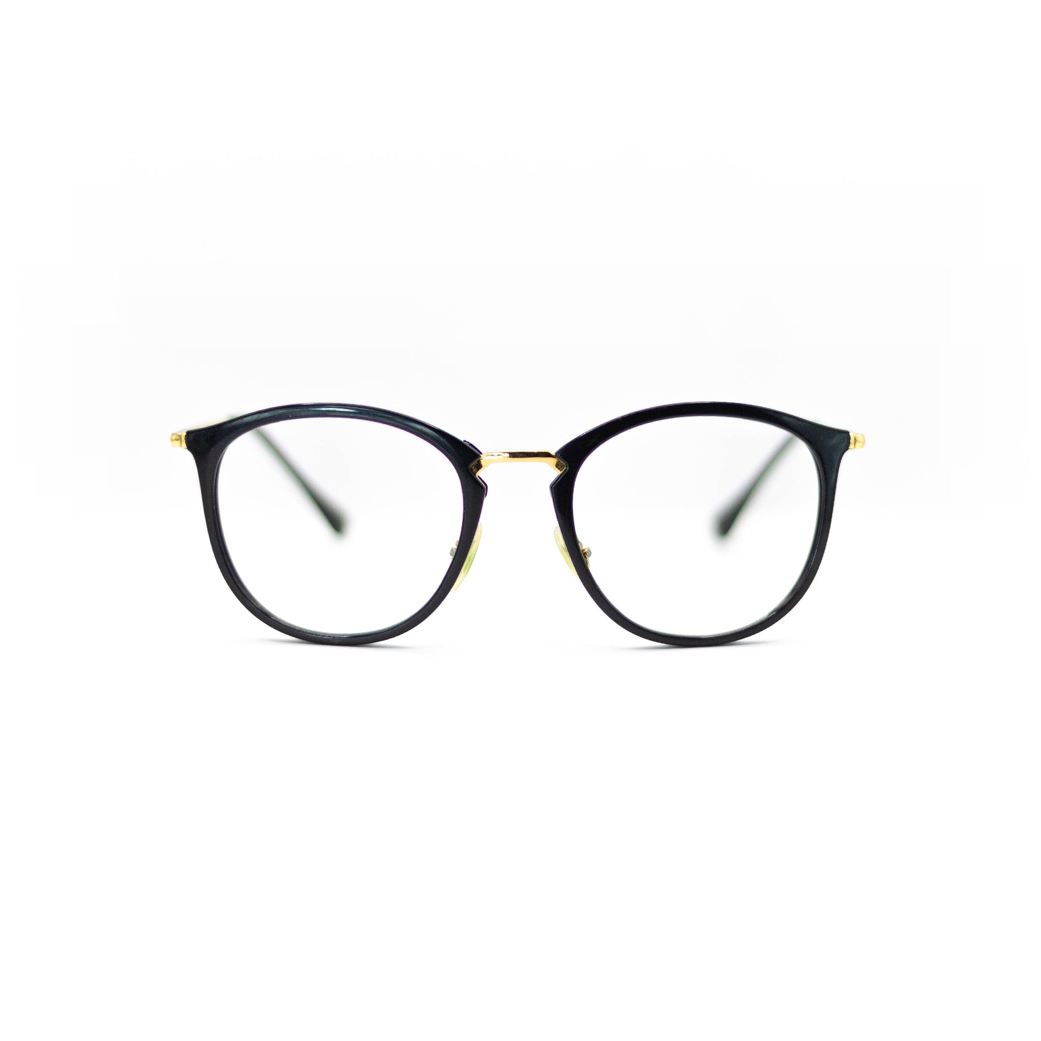 Avec leur forme papillon légèrement arrondie, ces lunettes combinent un cerclage noir en acétate à des branches dorées métalliques ultra fines, pour un rendu à la fois léger et raffiné. La ligne fluide du pont et les plaquettes ajustables ajoutent confort et précision au quotidien, sans jamais compromettre le style.
