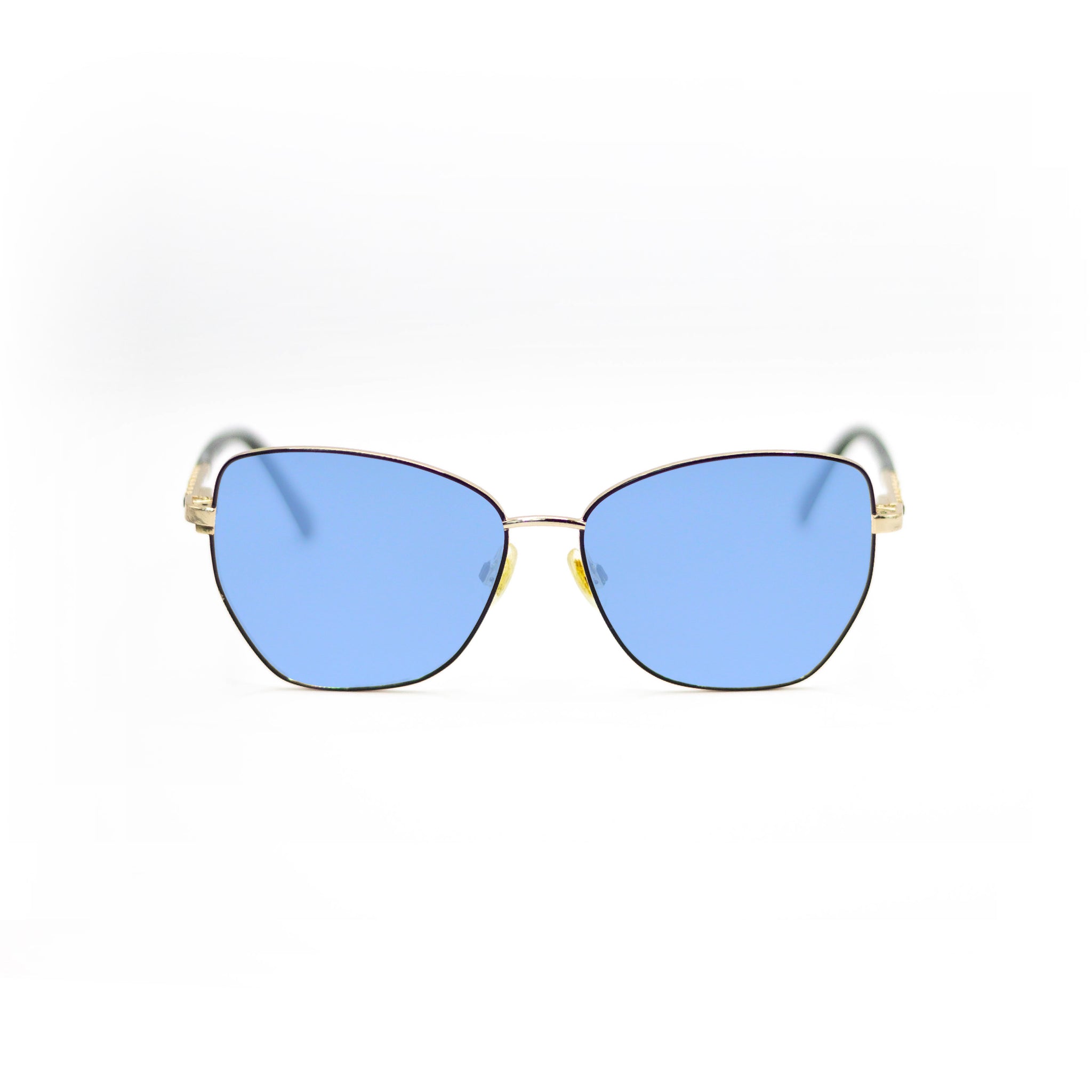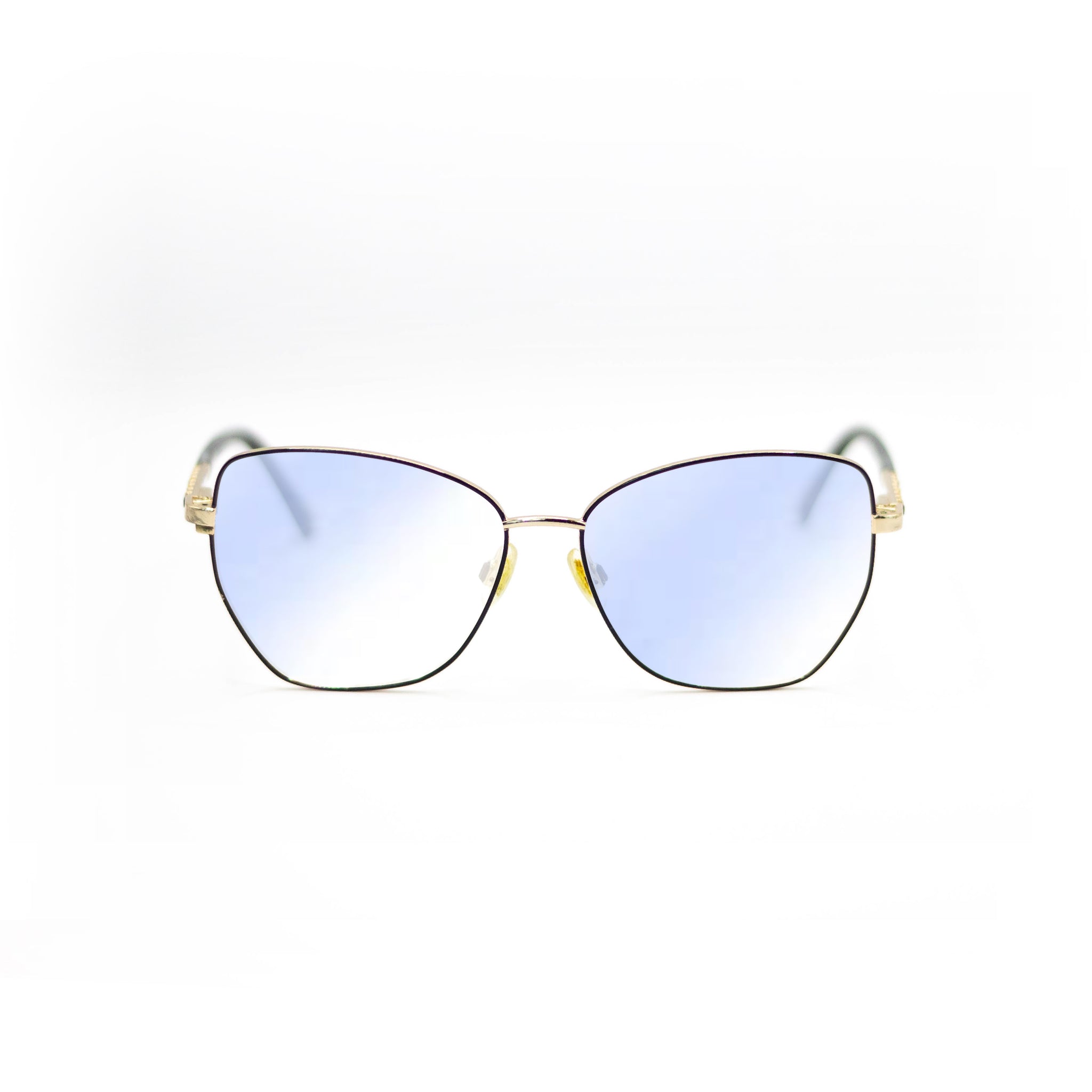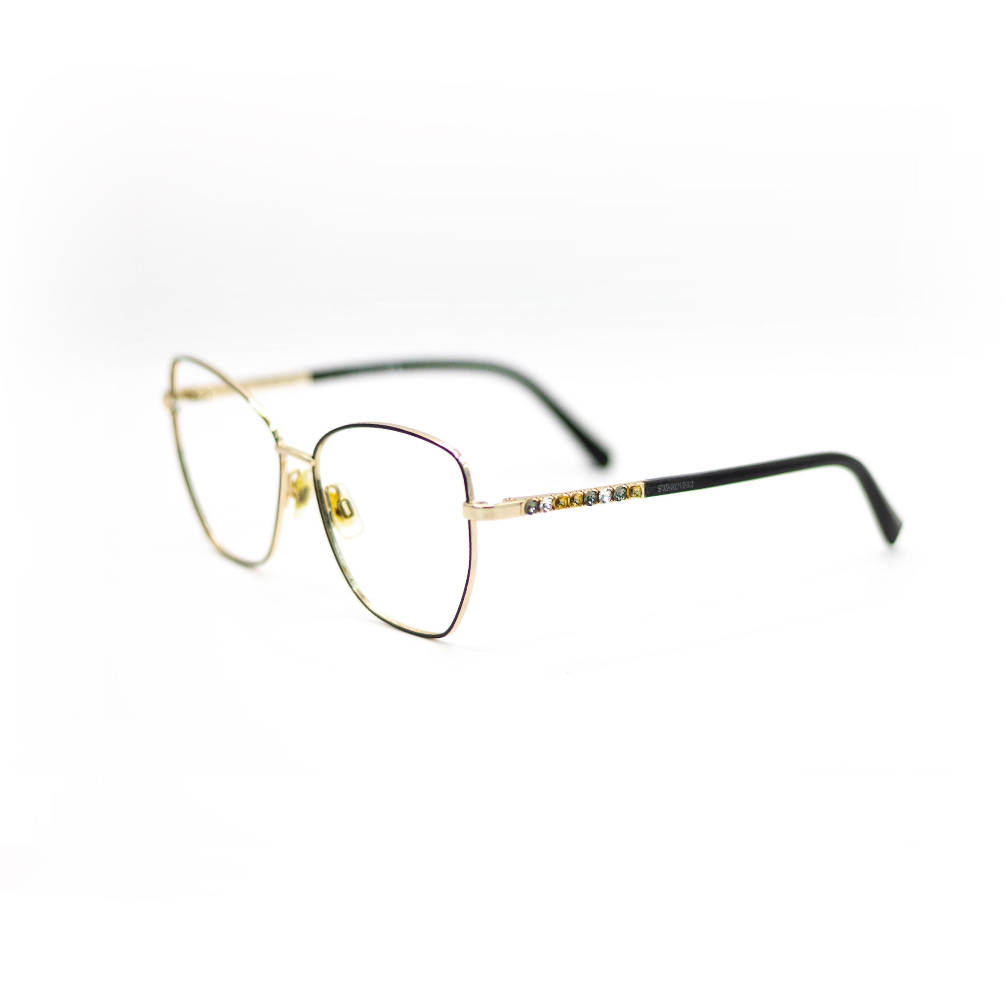 Avec leur monture fine en métal doré et leurs branches noires ornées de cristaux Swarovski multicolores, ces lunettes affichent une silhouette papillon subtilement géométrique, à la fois féminine et moderne. Les lignes douces du cerclage, rehaussées par une touche irisée sur le haut de la face, apportent une note lumineuse et raffinée à l’ensemble.