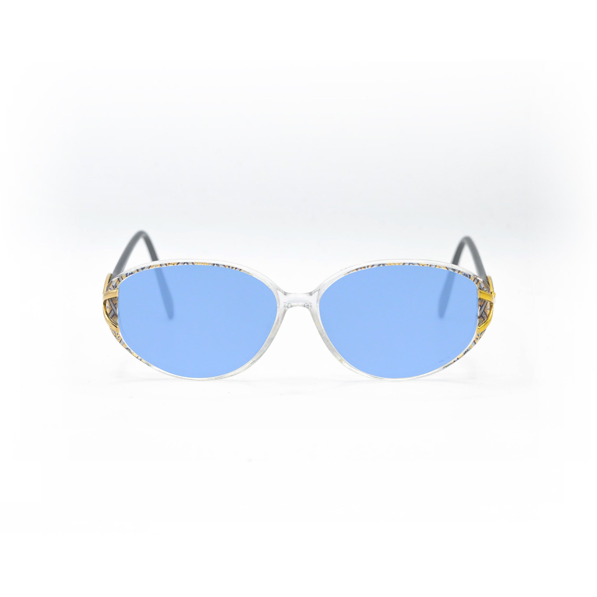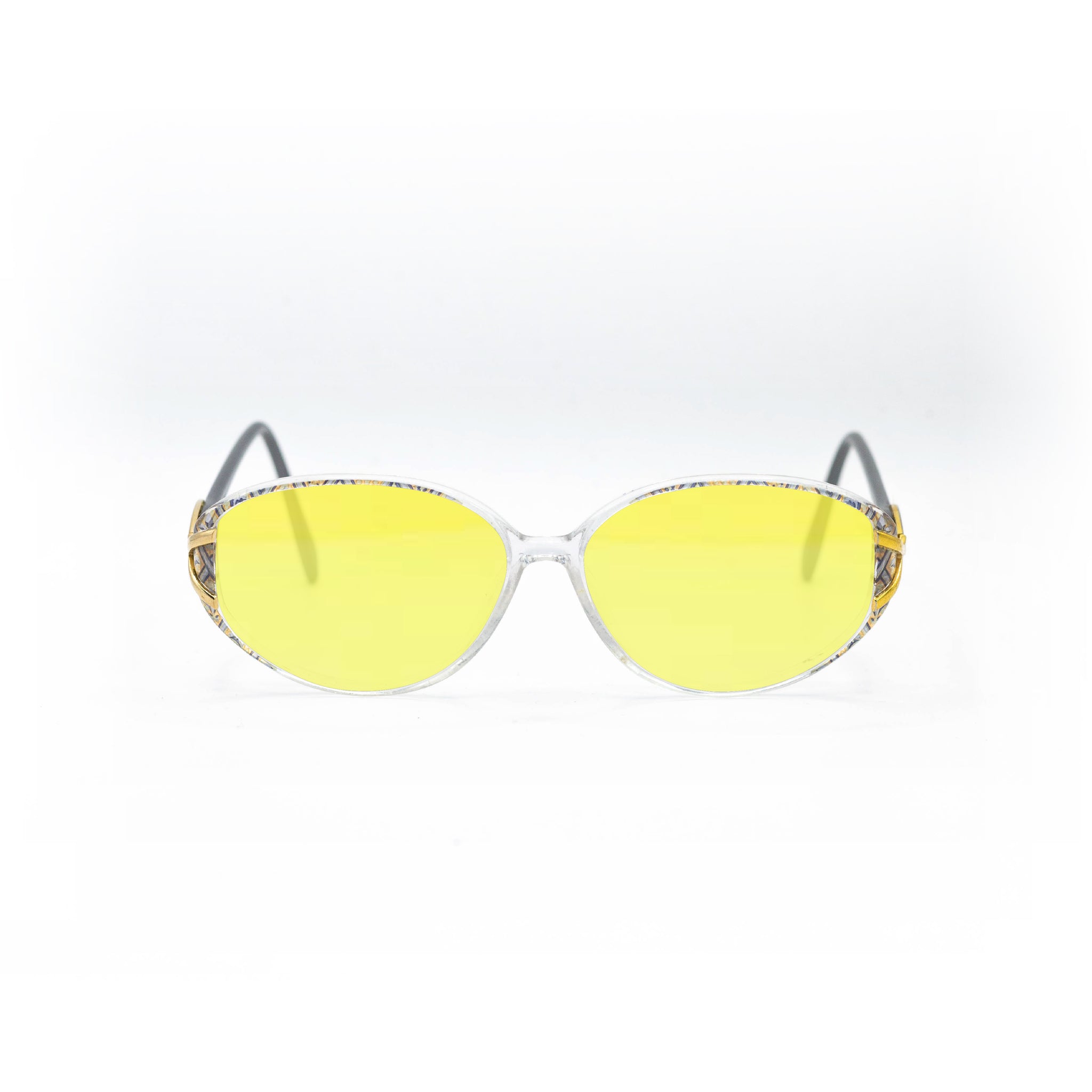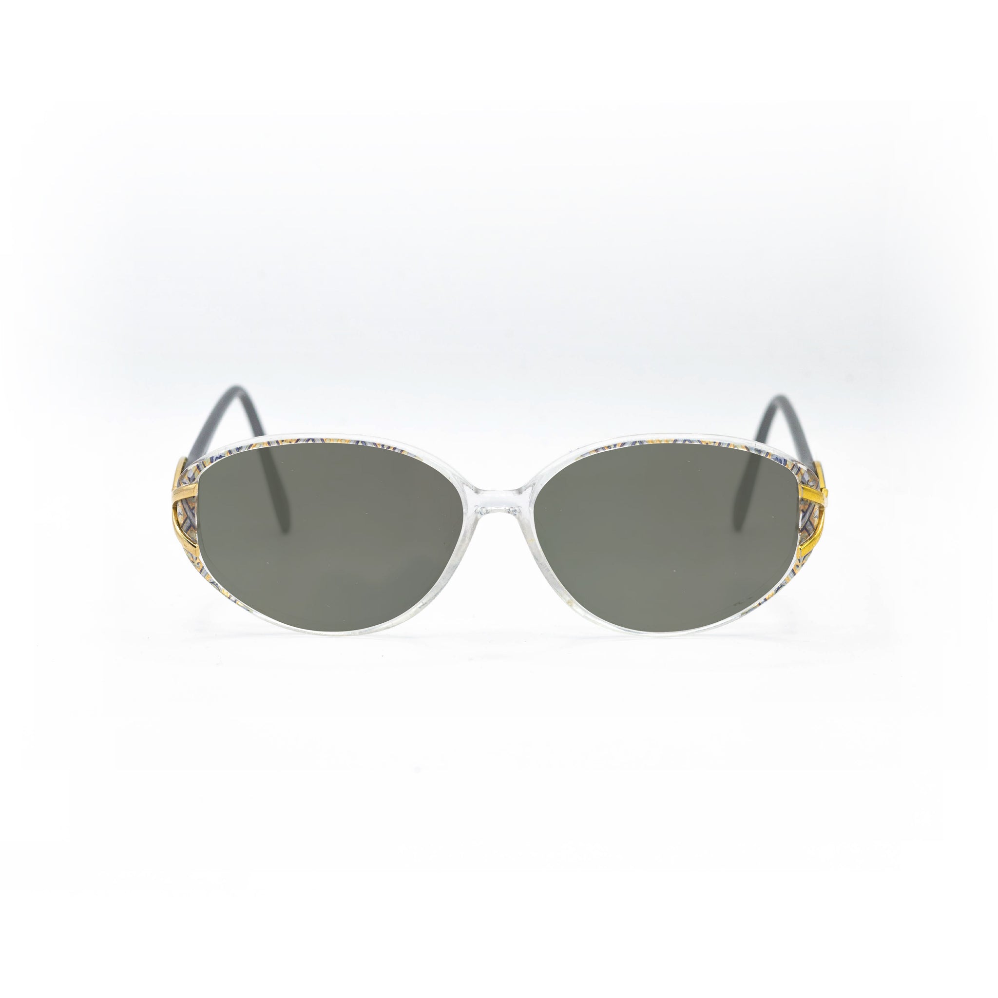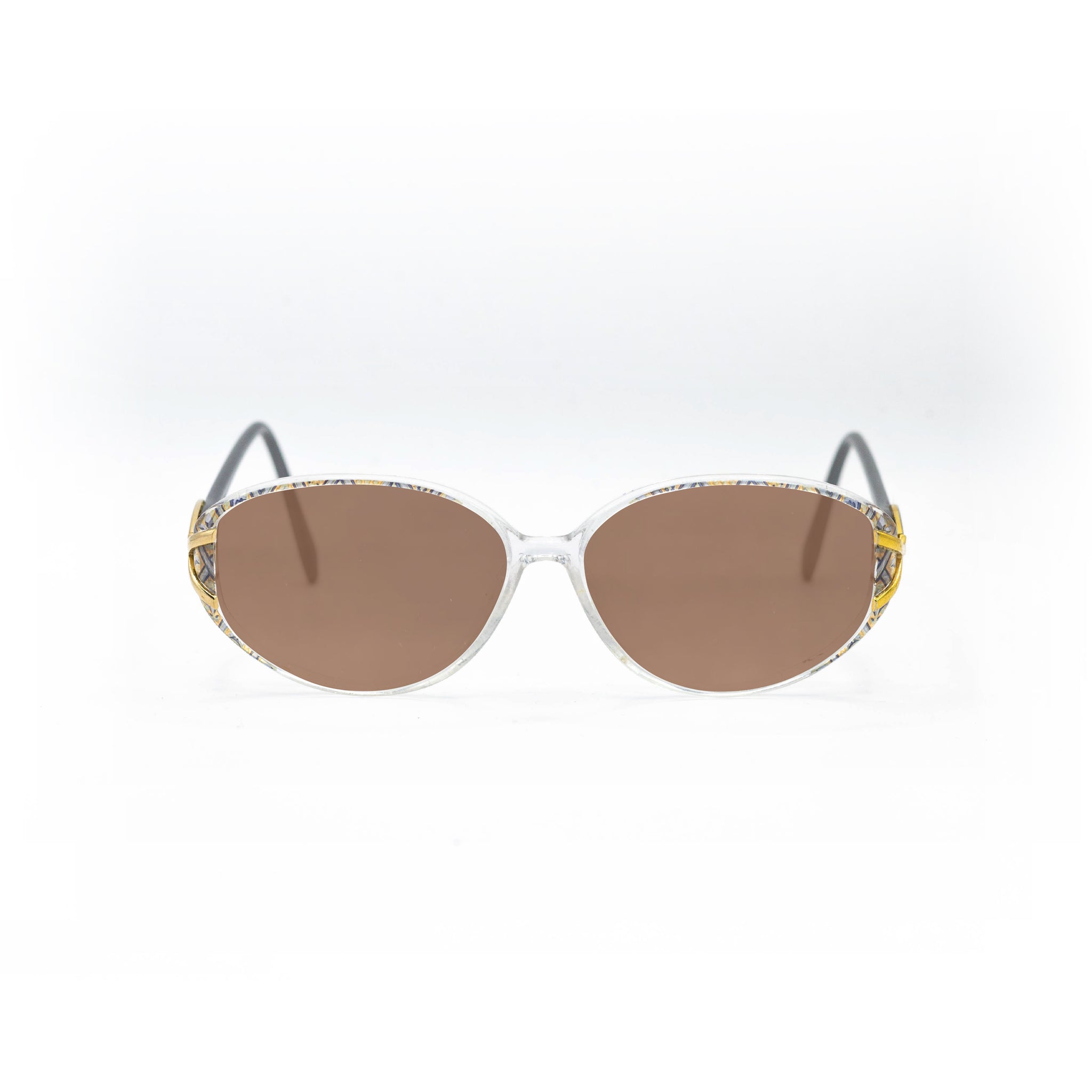 Cette monture combinée acétate et métal adopte une forme papillon douce et féminine, avec un contour transparent rehaussé de motifs dorés et noirs qui évoquent la finesse d’un vitrail. Les branches en métal noir mat viennent structurer l’ensemble sans alourdir le visage, dans un esprit minimaliste et contemporain.